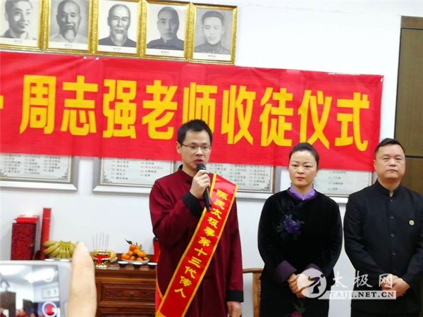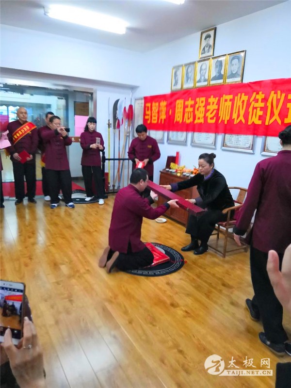 2019年1月5日,陈氏太极拳第十二代传人、世界陈小旺太极拳总会合肥分会会长、合肥太极缘养生馆馆长马智萍老师和世界陈小旺太极拳总会合肥分会秘书长、合肥太极缘养生馆教务主任兼总教练周志强老师的收徒仪式隆重举行。出席和观礼本次仪式的各位嘉宾及拳馆学员约40余人。 仪式开始前,马智萍馆长和周志强老师组织召开了太极缘养生馆的工作会议,扩大了组织成员,聘请了部分优秀学员成为太极缘养生馆的副秘书长、办公室主任、副主任及教练员,并向他们颁发了聘书。 在各位见证人的见证下,收徒仪式庄严而又隆重的举行。仪式开始由马智萍和周志强老师给陈氏太极拳祖师祭祖上香。师父入座后,准弟子依次向师父递拜师贴,行传统的叩拜大礼,给师父敬茶,师父赠以书剑回礼,礼成后弟子与师父合影留念。 两位师父祭祖 本次两位老师共收徒七位,行完拜师礼后,师父带领同门师兄弟和众弟子等一起叩拜祖师并向众人行礼。两位师父为弟子训话时,表示会珍惜师徒情谊,要求弟子勤学苦练,传承和发扬太极文化。弟子代表季汝治发言,他表示能成为两位师父的徒弟非常激动和高兴,以后会尊师重道,谨遵师父教诲,刻苦学习,跟随师父做太极文化的传播者。 两位师父携众弟子和同门师兄弟妹们祭祖 师父马智萍为弟子训话 师父周志强为弟子训话 弟子代表季汝治说话 师父与众弟子合影 本次收徒仪式圆满结束,在场嘉宾纷纷祝贺马老师和周老师喜获高徒,祝贺新弟子们觅得良师,成为陈氏太极拳的第十三代传人,希望两位老师带领弟子门将太极文化发扬光大! 新弟子名单:张良运、李维虎、王东贤、季汝治、黄启明、朱成杰、陈玉娟。 本站责编:张欢 |