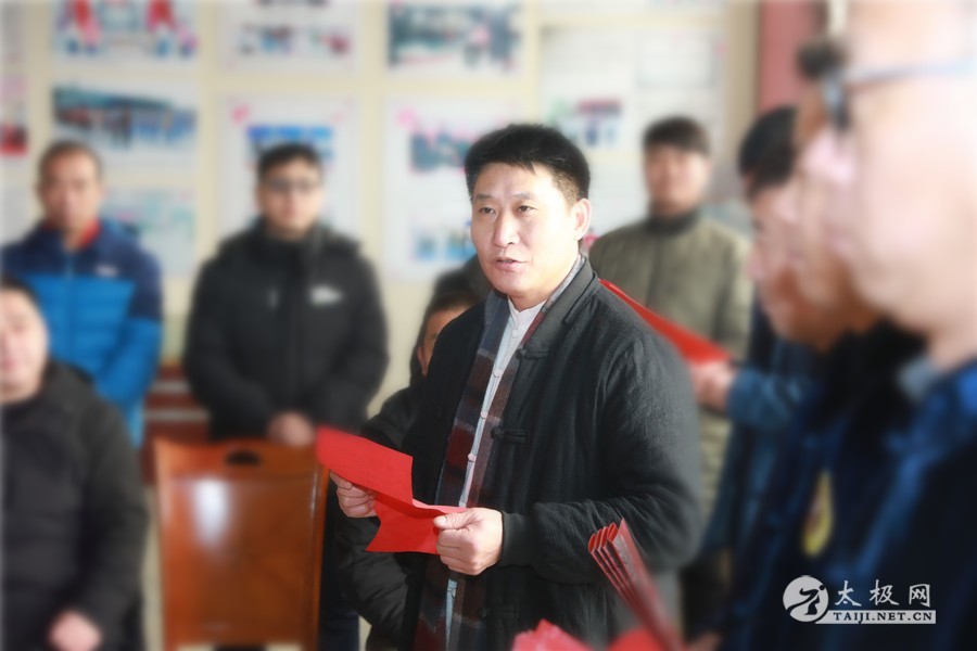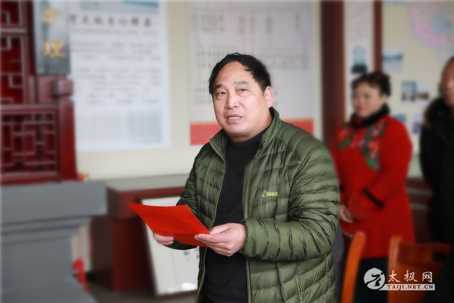 见证人闫忙种首先向和有禄老师喜收新徒表示祝贺,并希望新入门弟子要尊师重道、刻苦训练,认真向和有禄老师学习。最后向大家表达了新年的祝福。