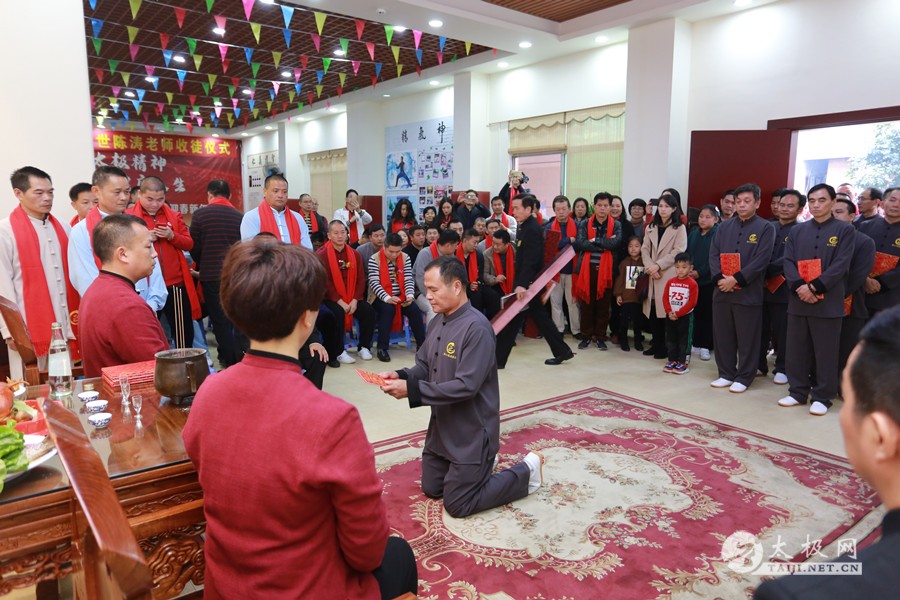 (太极网报道)2019年1月6日,深圳中正太极会馆总馆(平峦山公园脚下)内嘉宾云集,热闹非凡。深圳中正太极文化品牌创始人、陈家沟太极拳协会深圳会长、“陈家沟太极九龙”之龙首“德天龙”陈涛老师收徒仪式隆重举行。陈祖声、陈发金、赵展发、郭植文、彭宏太等三十一名太极拳爱好者经历师门严格考验,通过传统拜师礼仪,正式拜入陈涛老师门下,将肩负起传承太极拳、弘扬太极文化的责任。 陈涛老师出生于太极拳发源地温县陈家沟,系陈家沟陈氏第二十一世、陈氏太极拳第十二代传承人,自幼习武得一身真传,多年来扎根深圳传承和传播正宗陈家沟太极拳,传播健康、造福大众。曾多次受邀到深圳市麒麟山庄干部疗养院、宝安检察院、深圳前海合作区人民法院、龙华街道办、龙华小学、宝安慢性病医院、深圳市聚飞光电股份有限公司、深圳南山义工联合组织、北京大学研究生院武术系等机构任教,开展太极拳推广活动。在多年的教学实践中,陈涛老师总结出的太极拳教学模式日渐成熟,在深圳、东莞地区的影响逐渐扩大,得到了行内人士和社会各界的好评和认可,拳馆已成为当地知名武术培训机构。 集体合影留念 本次活动受到了当地武术界的广泛关注,武术名家云集共贺收徒仪式,出席活动的嘉宾有: 深圳市太极研究会副会长、宝安公园太极辅导站站长陈月星 全国武术竞标赛冠军、陈家沟太极拳学校教练陈云霞 深圳华典太极文化公司技术总监、总教练王亚军 清远市陈公馆太极谷馆长陈确 清远太极文化研究会会长陈远帆 佛山市华南陈氏太极拳馆馆长、禅城区武术协会副会长陈根全 王西安拳法研究会深圳分会会长、深圳耿见峰太极武馆馆长耿见峰 东莞市陈氏太极拳协会会长、东莞德生太极拳馆馆长韩军生 中国温县陈小旺太极拳法研究会副会长、东湖太极之家创始人仝国政 深圳市王魁太极拳研究院院长王魁 深圳悟真传统文化发展有限公司创办人、深圳国术馆馆长严顺娴 陈家沟陈氏太极拳协会虎门分会会长、虎门兴武太极拳总教练黄兴武 深圳德君太极拳会馆馆长、总教练张远方 深圳德君太极拳馆执行馆长王利娟 福建长峰太极文化传播有限公司总经理、陈家沟太极拳协会泉州分会会长陈长峰 龙华陈氏太极协会会长,龙华宝忠太极拳馆馆长杨宝忠 陈家沟深圳李斌太极拳馆创始人李斌 全国太极拳冠军、中国陈家沟太极拳推广中心教练陈会武 陈家沟太极拳协会广东顺德分会会长陈大伟 陈家沟陈炳国际太极院佛山健盈分院院长陈建翔 陈小星拳法研究会广州分会会长郑小飞 世界太极拳联谊会深圳分会会长岳建勇 世界太极拳联谊会中山分会会长、广东中山陈家沟太极拳陈真拳馆馆长兼总教练陈真 陈家沟陈真太极拳馆副馆长兼主教练张楠楠 广东顺德陈家沟太极拳馆主教练陈建雷 陈家沟太极拳学校深圳分校主教练万舒杨 深圳陈自强太极学堂总教练、恒臻太极文化创始人刘恒匍 深圳陈自强太极学堂堂主赵艳芳 广州恒劲拳馆总教练郑鹏孝 陈家沟陈氏太极拳协会深圳福田分会会长冯斌 珠海尚雅乐文化传播有限公司创始人、星辰太极拳馆馆长薛博智 中山陈自强太极学堂堂主赵笑阳 红门太极会馆首席教练赵三军 陈自强大师入室弟子、太极拳优秀传承人刘邦 陈家沟太极九龙惊天龙张二豪 陈涛老师向先贤上香敬酒 弟子代表宣读《拜师贴》 弟子递交《拜师贴》 向师父师母敬茶 师父向弟子颁发证书,披挂绶带 陈涛老师带领新弟子叩拜太极拳历代先贤 嘉宾太极拳表演 陈涛老师对出席活动的嘉宾表示感谢,对多年来当地各界人士及朋友们对拳馆及其本人的支持和帮助表示感谢,在太极拳的道路上将始终心怀感恩砥砺前行。此次开山收徒倍感责任和压力,对自己提出了更严格的传承要求 ,传承和推广太极拳的使命愈发强烈。将矢志不渝地传播陈家沟太极拳,让更多的人通过习练太极拳,共享健康,共沐太极拳所饱含的中华优秀传统文化的熏陶。将携弟子学员助力太极拳在深圳乃至广东地区不断开枝散叶。 新弟子名单:陈祖声、陈发金、赵展发、郭植文、彭宏太、陈淦星、贾国章、林荣勤、何文江、江海波、郭植民、张俊生、华奕干、杨明强、颜回龙、王文林、董胜利、陈世松、陈胜武、梁纯海、梅永刚、翁振涛、符建军、翁桂鑫、张 丹、郑庆林、翁嘉洪、王文永、江世明、王兴博、陈 林 责编:太极网豪杰 |