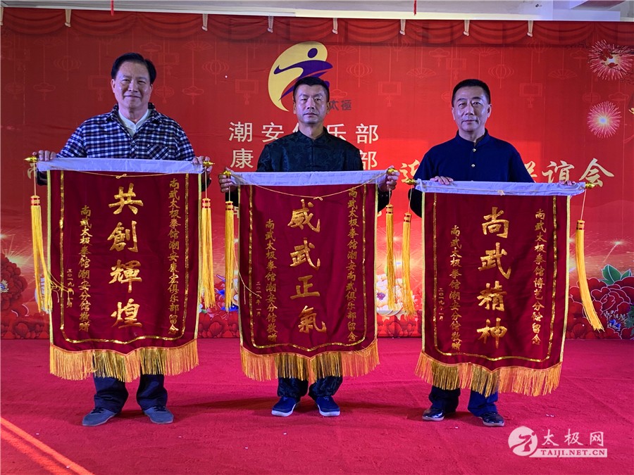 (太极网报道)2019年1月12日,由潮安区尚武太极拳俱乐部、尚武太极拳馆博艺分馆、康宏尚武太极拳俱乐部、潮安装饰尚武太极拳俱乐部联合举办的尚武太极拳迎新春联谊会在潮安区隆重举行。本次活动规模宏大,气氛热烈。与会的领导嘉宾、尚武太极拳馆的兄弟单位领导、学员两百余人共聚一堂,参加此次交流联谊活动。 潮安尚武太极拳俱乐部会场张灯结彩,布置得喜气洋洋,到处充满隆重、浓郁的节日气氛。下午3点整,尚武太极新春联谊会主办、协办单位领导,以及尚武太极兄弟单位领导、嘉宾主席台前就座。尚武太极新春联谊会在热烈的气氛中拉开帷幕。 与会领导及嘉宾有: 潮安区文化馆馆长 陈少榜 尚武太极拳馆全国总部馆长兼总教练 陈向武携夫人辛翠萍 尚武太极拳馆全国总部常务副馆长 沈槟 尚武太极拳馆全国总部副馆长 王贤钦 尚武太极拳馆全国总部副馆长 陈璇莹 尚武太极拳馆全国总部办公室主任 姚淮杰 尚武太极拳馆全国总部副馆长 陈伟正 尚武太极拳馆全国总部副馆长 郑锐宏 尚武太极拳馆澄海分馆馆长兼总教练 李育州 尚武太极拳馆五方分馆馆长兼总教练 蔡程豪 尚武太极拳馆潮安分馆馆长兼总教练 陈有岳 尚武太极拳馆潮南分馆馆长总兼总教练 庄东升 尚武太极拳馆潮南分馆荣誉馆长、潮南尚武太极拳俱乐部荣誉主席 周镇桂 尚武太极拳馆潮南分馆副馆长 郑泽然 尚武太极拳馆潮南分馆副馆长 周益和 潮南尚武太极拳俱乐部副主席 陈汉桂 主办、协办单位领导有: 潮安尚武太极拳俱乐部主席 杨金伟 潮安尚武太极拳俱乐部常务副主席 曾元楷 尚武太极拳馆博艺分馆馆长 吴梅生 尚武太极拳馆博艺分馆荣誉馆长 林孝璧 尚武太极拳馆博艺分馆常务副馆长 杨秀鑫 康宏尚武太极拳俱乐部主席黄坤明 康宏尚武太极拳俱乐部常务副主席 许钦松 潮安装饰尚武太极拳俱乐部副主席 刘俊楠等 ,一同参加迎新春联谊会活动。 活动开始,杨金伟主席、吴梅生馆长、许钦松主席先后致迎宾欢迎辞,并介绍各单位的发展情况。 陈家沟陈氏第二十世、陈氏太极拳第十二代嫡宗传人、国家武术七段、非物质文化遗产(太极拳)代表性传承人,尚武太极拳馆全国总部馆长陈向武老师发表讲话,对潮安区尚武太极拳各分馆、各俱乐部在太极文化传播中作出的贡献予以肯定,并鼓励大家再接再厉,争取在新的一年里再创辉煌,为中华传统文化太极拳的弘扬传播做出更大的贡献,使之造福人民。 尚武太极拳馆潮安分馆陈有岳馆长向潮安区兄弟单位赠送锦旗,以之留念。 尚武太极拳迎新春联谊会在潮安区文化馆馆长开场高亢、动听的歌声中开始,一时间歌声、琴声、琵琶声、武韵、拳术展演等系列活动此起彼伏,演绎出一篇华丽动人的乐章,精彩的演出获得阵阵掌声。 宴会席上新老宾朋以及领导嘉宾、尚武太极同门师兄弟等推杯换盏,开怀畅饮,相互交流,相互学习,其乐融融,尚武太极迎新春联谊会,在一派祥和热烈的气氛中降下帷幕。 责任编辑:太极网小田 |