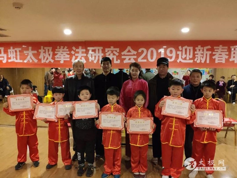 会议中,会长李刚强对2018年度的工作进行了总结,现场举行了优秀个人及优秀团体的表彰活动,进一步激励了大家学拳练拳、把马虹太极拳法发扬光大的决心。弘扬传统文化,小朋友们既得到了奖状,同时也到得了本协会书法爱好者周赛安的书法作品,每个人的脸上洋溢着幸福的笑容。 生机勃勃的新生代小学员 先进个人、优秀传承人和优秀团体 李会长和获奖个人及团体合影留念 个人及团体轮番上场表演太极拳,旨在大家相互参照学习,拳友们也对习拳的心得进行了交流,有利于促进各个成员进一步的提高练拳的质量,加强成员间的交流。 小朋友表演太极拳