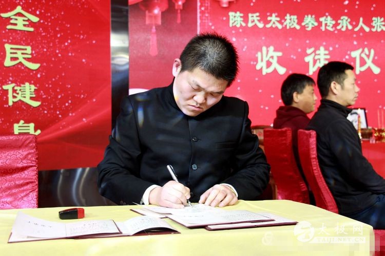 (太极网报道)千百年来,师徒相授一直是武术最主要的传承形式。2019年1月19日,陈氏太极拳第十二代正宗传人、世界太极拳联谊会副秘书长张宗军老师收徒仪式在山东省滕州市隆重举行。来自济宁、薛城、滕州的6名太极爱好者经过重重考核,正式拜在张宗军老师门下,肩负起传播与传承太极拳的责任与使命。苏州市武术协会副主席、陈家沟陈氏太极拳协会苏州分会会长马力、陈家沟陈氏太极拳协会连云港分会会长孙宜波两位老师亲临现场见证拜师仪式,全市二百余名太极拳爱好者纷纷到场祝贺。 张宗军老师在入室弟子证书上签字 见证人马力、孙宜波老师在在入室弟子证书上签字 拜师仪式遵循传统,简洁庄重。张宗军老师上香敬酒,叩拜祖师,告慰祖师今日收徒,香火有继,传承有序。随后弟子们依次上前向师父、师母行拜师礼,递交拜师贴并接受师父回帖,新弟子在师父带领下叩拜太极拳始祖。在众人的见证下,拜师礼仪圆满完成,6位新弟子正式成为陈式太极拳传承人。 见证人马力老师在讲话中表示,师兄张宗军老师今天又收了6位为人正直、品德兼优、热爱太极的好徒弟,为此感到万分的高兴与激动,他代表师兄弟们向师兄表示热烈的祝贺;并表示本次收徒标志着陈式太极拳的队伍在不断发展壮大,令人十分欣喜;祝贺6位新弟子能找到这样的好师父,希望他们努力学好太极,恪守门规,尊师重道,团结武林同道,真正做到理解太极、练好太极、用好太极。 周星宇作为弟子代表发言,他表示会一直敬仰太极拳术,更敬仰师父的武德拳技,让更多的人认识到太极可以融入我们的生活,照亮我们的生命。今后将追随师父的脚步,维护师父形象,传颂恩师师德,谨遵师训,把陈式太极拳视为生命的一部分,为继承发扬陈式太极拳做出自己最大的贡献。 张宗军老师宣读了门规戒律以及师训,他告诫新入门弟子要团结同门,认真习练太极拳,用心体悟太极文化,真正肩负起传承太极拳,弘扬太极文化的历史使命,为太极拳事业的发展不懈努力,为太极拳的传播和推广努力奋斗。 同门师兄弟孙宜波、张宗军、马力、李宏伟合影 山东山森数控技术有限公司副总刘栗代表公司太极拳培训班向张宗军老师敬献锦旗,以表对老师的尊敬与祝贺。 张宗军,自幼习练太极拳,十几岁便独上陈家沟学得太极真传,陈氏太极拳第十二代正宗传人,师承陈家沟陈氏第十九世太极拳守门人、国际太极拳大师陈小星。国家级社会体育指导员、中国武术段位六段、国家一级武术裁判员。现任滕州市第十五届政协委员,世界太极拳联谊会副秘书长,陈家沟太极拳宗军拳馆馆长,枣庄市太极拳运动协会副主席,滕州市太极拳运动协会法人,滕州市公安局太极拳总教练,中央民族大学武术协会顾问,枣庄科技职业学院太极拳总教练,河南舞钢市武警消防大队顾问。 本站责编:太极网萌 |