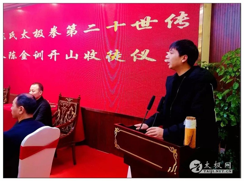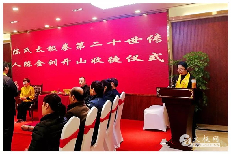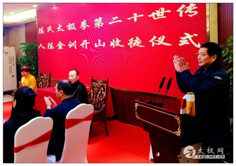2019年1月17日上午,陈氏太极拳第十二代传人陈金训先生的开山收徒典礼在江苏省常州市武进区金龙大酒店的会议大厅隆重举行。收徒仪式由陈氏太极拳传人,上海本木公司董事长陈军征先生主持。