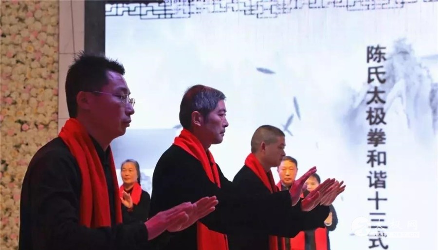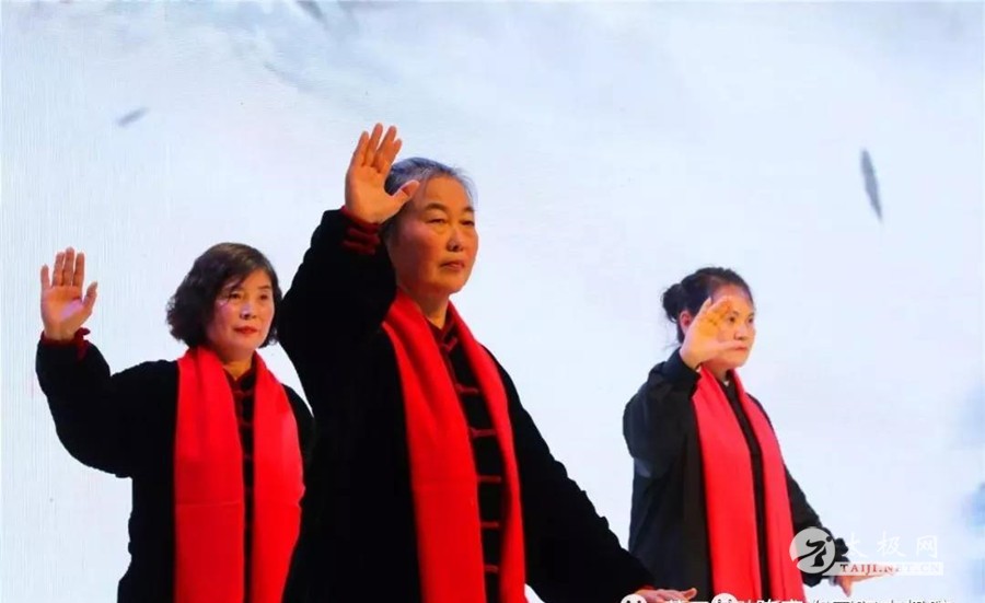 节目多种多样,好戏连台,首先为大家演练的是《陈氏太极拳和谐十三式》,由协会秘书长周德印同志带领理事张慧莲、沈冰、邢伟利等集体演练。