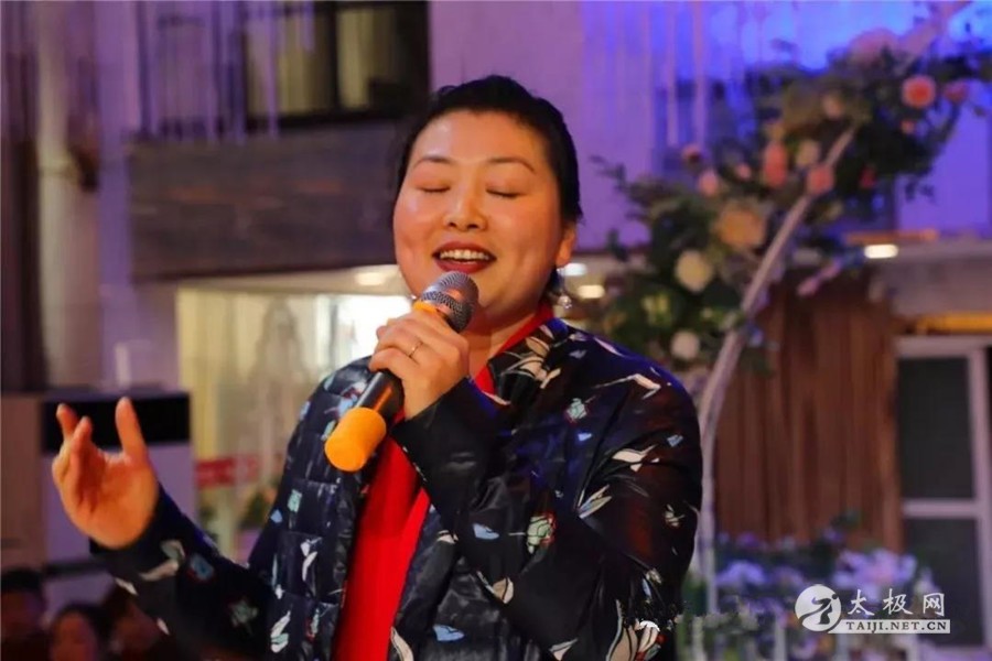 由协会副会长吴景芝女士,深情演唱《风雨彩虹,铿锵玫瑰》,充分展示着平台女性拳友的魅力。