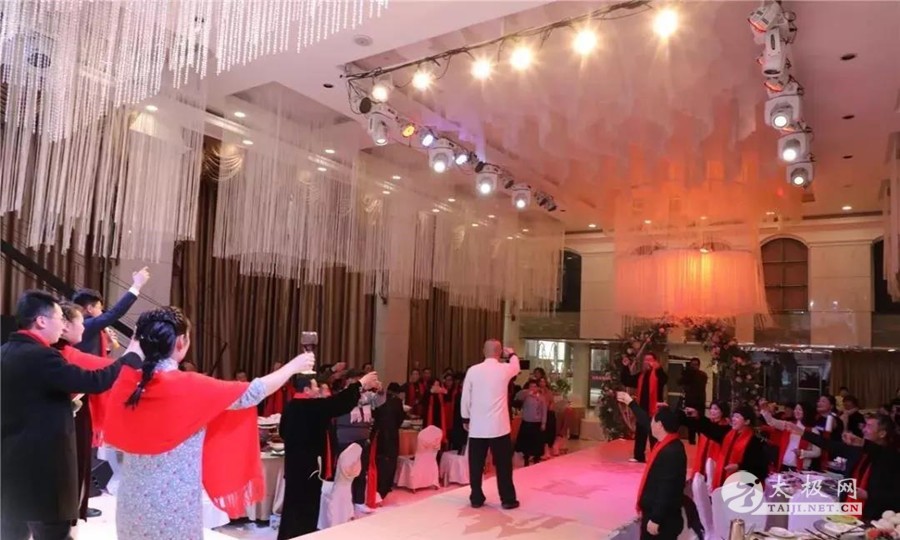 意外压轴,原本在节目单上的诗朗诵《与你一起,春暖花开》,却不知道怎么现场却改成了多人真情朗诵,演职拳友精心准备,却独瞒过了教练,朴实的话语,感人至深的演艺,感动了全场,更是感动了教练董卫星,学员们发自内心的话语,拳友们潸然泪下,教练更是流下了激动的泪水。将本届年会推向了更大的一个高潮。最后,主持人宣布陈家沟国际太极院柘城分院、柘城县陈氏太极拳协会2019平台年会顺利圆满的落下帷幕,由周德印秘书长提议,会长董卫星先生邀请大家共同举杯,相约来年再见。