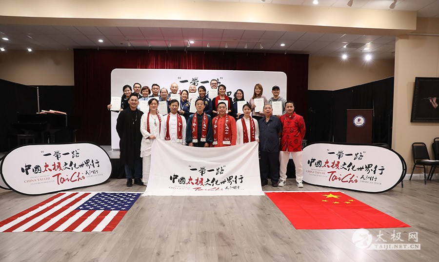 (钱承飞供稿)美国时间2月14日,“一带一路“中国太极文化世界行美洲行专家团,从拉斯维加斯出发至洛杉矶,一路风尘仆仆,冒着暴雨,按计划将开展美洲行最后一站(16至17日)授课活动。 中国太极专家团自2月7日起在旧金山湾区首站成功开启了美洲太极行之旅,让旧金山湾区150多名太极爱好者受益匪浅。12至13日,美洲行第二站太极教学授课活动在拉斯维加斯举行。授课内容包括:太极八法五步课程,同时根据学员提出的相关问题进行深入解答,随后进行针对性分组练习,专家团还举办太极文化理论讲座,拉斯维加斯近200名太极爱好者参加了太极教学活动。 12日当晚,太极专家团一来到拉斯维加斯功夫太极文化中心,就与当地太极爱好者进行文化交流,随着美妙音乐旋律,专家团邱慧芳老师向当地太极爱好者展示了太极“八法五步”,陈娟老师展示了陈式太极拳,并同美国太极拳爱好者进沟通和交流,随后专家团陈正雷老师向当地太极拳爱好者致词并娓娓讲述了历史悠久的中国太极文化,生动有趣的讲课,让当地学员获得很大收获。13日除了教学活动,当地组织者与专家团队还举行了颁发学员结业证书的仪式。 |