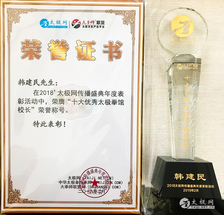 荣誉证书 太极网(taiji.net.cn)是创立于1997年的专业太极网站,领衔太极文化传播与推广20余载。为积极挖掘、表彰、鼓励在2018年度太极拳传播推广领域表现突出的传承人、拳师,太极网·大拳师联盟发起举办“2018太极网传播盛典年度表彰活动”,充分结合当前“互联网+太极拳”传播新形势,与广大拳友共同见证太极拳传播的勃勃生机! 本次表彰活动充分利用互联网传播,广知拳界,广大太极拳传承人、拳师公平竞争。开通线上自主申报或推荐,由主办方进行资料初审筛选,活动组委会根据初审结果二次审核把关,综合考量拳师武德拳技、2018活动成绩、推广贡献等最终择优通过,保证活动的权威性和严谨性。 韩建民,1969年出生于太极拳发源地—河南省温县。12岁开始学习太极拳。15岁学于温县赵堡腾挪忽灵架太极拳第四代传人、温县忽灵太极拳拳法研究会会长—原占国先生系统学习太极拳;后追随温县体育局太极拳教练、温县太极拳研究会副总教练—陈有则先生;师承陈家沟陈氏第十九世太极拳掌门人、世界陈小旺太极拳总会会长、太极“四大金刚”之一、国家级非物质文化遗产项目代表性传承人—陈小旺宗师研习太极拳,并被恩师收为入室弟子。 现任陈家沟陈飞鸿太极拳馆副馆长,北京陈飞鸿太极拳馆拳法顾问兼副总教练,北京如许太极拳馆总教练,广西柳城陈小旺宗师太极拳培训基地总教练,卜里书院太极拳教练,甡隆书院太极拳教练。 荣誉经历: 23岁前参加温县太极拳推手大赛并多次获奖,在广东武术俱乐部任专职教练。 传拳经历: 2017年10月,韩建民为柳城县总工会举办的第一期太极拳培训班上的学员授拳; 2018年3月,韩建民在柳城县总工会举办的第二期太极拳培训班上给大家讲授太极拳理论知识,传授拳艺,来自全县50多名干部职工参与学习; 2018年6月,韩建民受邀为柳城县近300名职工群众培训太极拳; 2018年11月,柳城县总工会及文化体育部门联合开展了冬季陈氏太极拳公益培训活动,韩建民作为总教练来到柳城县城走入社区,向当地群众和广大干部职工推广和普及太极拳,传授太极拳基本架势和套路,让大家在研习太极拳的过程中感受中国传统文化的魅力; 世界陈小旺太极拳总会柳城培训基地、贵阳市修文县陈小旺培训基地、重庆市长寿区陈小旺培训基地、陈家沟太极预备教练培训基地、上海百佛园陈小旺培训基地先后举办多期太极拳公益培训班,给当地群众无偿教授陈氏太极拳,韩建民还多次举办太极拳健身讲座,向人们传授练拳健身知识。据不完全统计,基地开展的一系列太极拳文化传播、太极拳健身推广活动,已惠及各界人士三千人以上,学拳后一直坚持练拳者近千人。 韩建民老师在采访的最后表示:荣获2018年太极网“十大优秀馆校长”既是荣誉更是责任担当,今后将继续致力于研究、继承、弘扬太极文化,普及、推广太极运动,传承中华国粹,服务社会健康发展。 本站责编:太极网萌 |