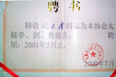 2000年被安徽省武术协会聘为太极拳剑教练员;