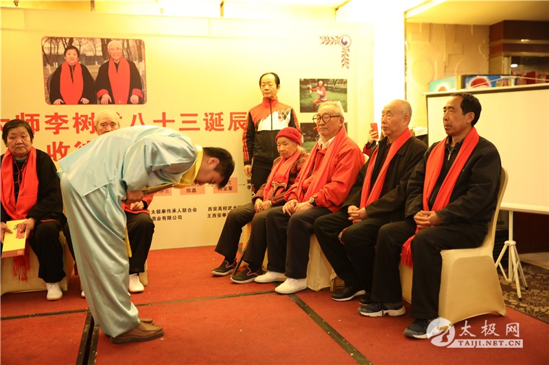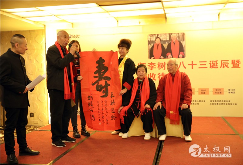 (太极网 西安讯)漫步太极风雨路,春风化雨数十载 。3月9日,中国文化和武术名城西安,太极拳大师李树发八十三诞辰暨收徒仪式在这里隆重举行,来自全国各地的李树发大师弟子传人以及众多武术界名流及名师名家到场祝贺,共同祝福这位德艺双馨的武术界老前辈、老楷模,共同见证大师传承再谱新篇章。 李树发师承一代宗师陈金鳌,系陈式太极拳第十代传人,为当代陈氏太极拳小架代表性人物。数十年来立足西安,面向全国传承和传播陈氏小架太极拳,桃李满天下。作为媒体和朋友,多年来太极网见证和记录了李老在太极拳道路上的发展和辉煌。太极网创始人、温县太极拳传承人联合会主席刘洪奇及夫人张惠芳应邀出席活动,向这位大师和老朋友送去祝福。太极网全媒体团队现场跟踪报道,向各地拳友传播和分享这一美好时刻。 出席活动的嘉宾有:太极拳大师陈凤英,一代太极宗师陈金鳌弟子王成新,李树发大师胞弟李树才、李树田,西安武协常务副主席方秀敏,西安武协副主席、西安陈金鳌太极拳学会会长刘永强,莲湖区武协副主席高建武,原温县体育局局长原福全,铜川市武协主席王建民,陈子明太极拳研究会会长王胜利,西安陈金鳌太极拳学会常务副会长赵学法、辛爱民、职胜奇、赵雁军,西安拳法研究会西安分会会会长余郅铖,西安弘易太极拳会馆馆长职永成,陈发科太极拳研究会会长刘宝欢,陈鑫太极拳研究会会长陈孝龙,陈家沟太极拳传人陈东山,国家一级演员、三意社社长王占毅,陈金鳌义孙潘永淇,原武术冠军韩俊霞,佛汉拳武术学会会长王海军,西安陈金鳌太极拳学会澳洲分会会长汪贤滨,慧绿养生太极协会会长雒春慧,临潼陈式太极拳研习会会长陈增,西安交大陈式传统太极拳养生学会副会长唐志典,西安陈金鳌太极拳学会副秘书长赵宏安等。 热情欢腾的开场鼓表演 西安陈金鳌太极拳学会常务副会长、西安陈氏太极拳联合会副会长张勇刚主持仪式,他特别提到每次在祝贺师父李树发生日的时候似乎都忽略了师娘这位十分重要的人,她与师父相濡以沫地走过了风雨坎坷的六十余载,跟随师父去往各地传拳毫无怨言,春风化雨般地给予了众位弟子无尽的鼓励与支持。张勇刚老师借此机会代表全体弟子向师娘致以崇高的敬意,祝福师父、师娘身体康健,万事如意。 收徒仪式中,李树发大师向太极拳始祖陈王廷及历代宗师敬香行礼,感念先祖创拳之辛劳,追思先师传拳之恩德。随后,新入门弟子依次上前递交拜师贴、行拜师礼、敬拜师茶,师父回礼。在众人的见证下,庄重简洁的拜师礼仪圆满完成,新弟子正式承担起传承太极拳、弘扬太极文化的责任担当。 原温县体育局局长原福全在致辞中表示,十分荣幸能与大家共同见证李树发大师的收徒仪式,真切地感受着古老而传统的拜师礼仪。通过本次收徒仪式,奠定了李树发大师与众位新弟子的传承关系,今后将一同肩负起弘扬太极文化的重任。众人期待着在李树发大师米寿、白寿、茶寿的日子欢聚一堂,共祝李树发大师寿辰,并感谢他数十年为了太极拳的传播弘扬所做出的巨大贡献。 西安武协常务副主席方秀敏在致辞中表示,来到仪式现场为了接喜接福、接着学习,他肯定了传统和传承、继承和发扬的至关重要性,仪式每个过程的一点一滴之处无不体现着传统礼仪的细节。希望新弟子们今后能谨遵师训,用心体悟太极文化,发扬太极拳,为传播健康造福社会做出贡献。 西安武协副主席、西安陈金鳌太极拳学会会长刘永强代表西安武协和陈金鳌太极拳学会祝福李树发大师福寿绵长,恭喜李树发大师再收新徒,希望他们以今天为起点,将陈氏太极拳发扬光大,共享太极拳带来的幸福与健康。 多位书法艺术家为李树发大师寿诞送上作品 拜师仪式圆满礼成后,李树发大师八十三寿诞庆典仪式随之举行,李树发大师的之女李英、李林等献上鲜花及生日蛋糕。甜美的蛋糕蕴藏着香醇深厚的情谊,温馨灿烂的烛光温暖着每个人的心。现场的各位同仁、亲人以及李树发大师全国各地的弟子代表们有序上前行拜寿礼,向李老送上最真挚的生日祝福。 现场文艺表演 共享寿宴 李桃枝叶茂,武坛不老松。李树发大师表示传承推广太极拳是他最开心的事,将为弘扬太极拳这一民族精粹而奋斗终生。我们衷心祝愿李树发大师太极之树常青,生命之水长流! 李树发:男,汉族,1937年出生,河南封邱县人。1967年年至而立时,拜陈家沟陈氏十八世、太极拳宗师陈金鳌为师。研习陈式小架太极拳及门下器械。博学恩师拳法之精妙,至今已逾五十载。恩师逝世后,与同门师兄弟,尊崇恩师遗训,积极传播陈式太极拳的文化精髓,育门下弟子悉太极之理,明太极之道。使太极弟子能谦恭虚心受教,积众善以为善之理,数十载不移。 现为太极网首席武术导师、《大拳师·百家讲堂》主讲人、鉴于其在太极拳传承和传播领域的杰出成就,2016年太极网、温县太极拳传承人联合会向其授予“终身成就奖“。其百余弟子,遍布大江南北,老、中、青、少皆有,是一支具有潜力的太极新军,为弘扬陈式小架太极拳打下了良好基础。 本站责编:太极网萌 |