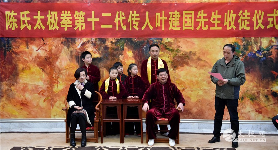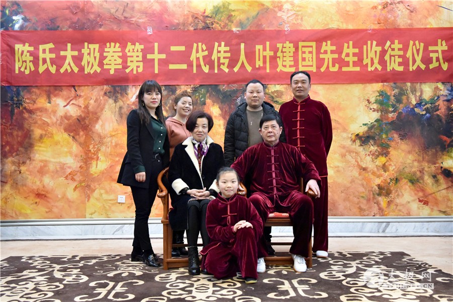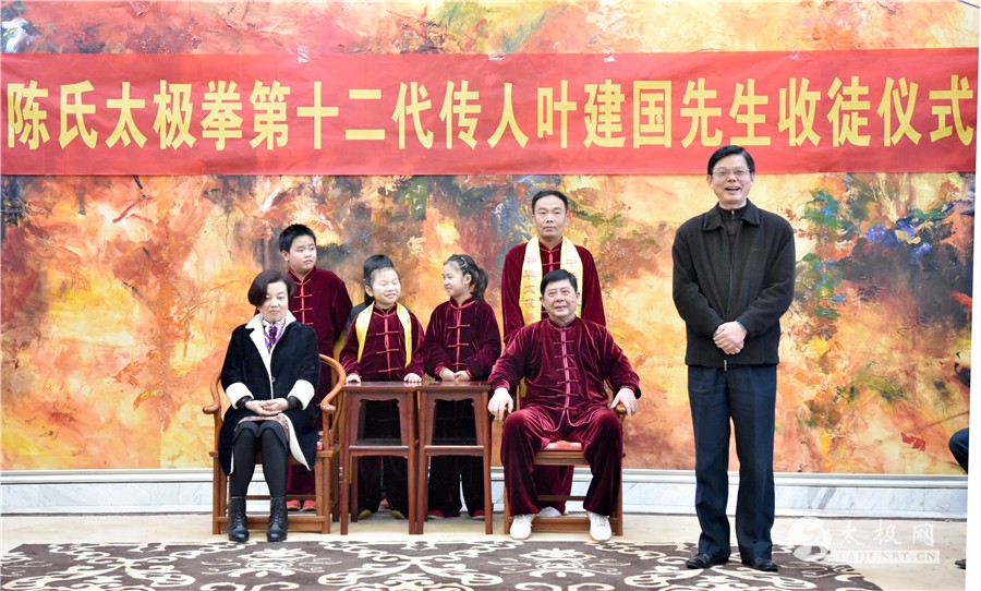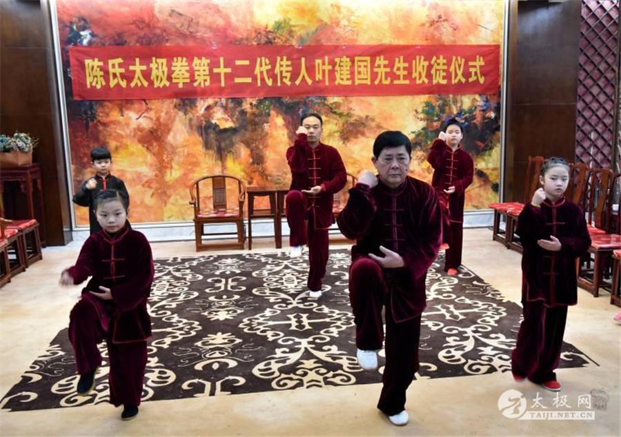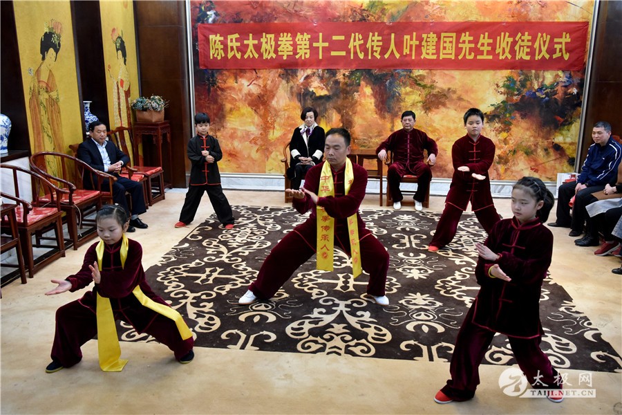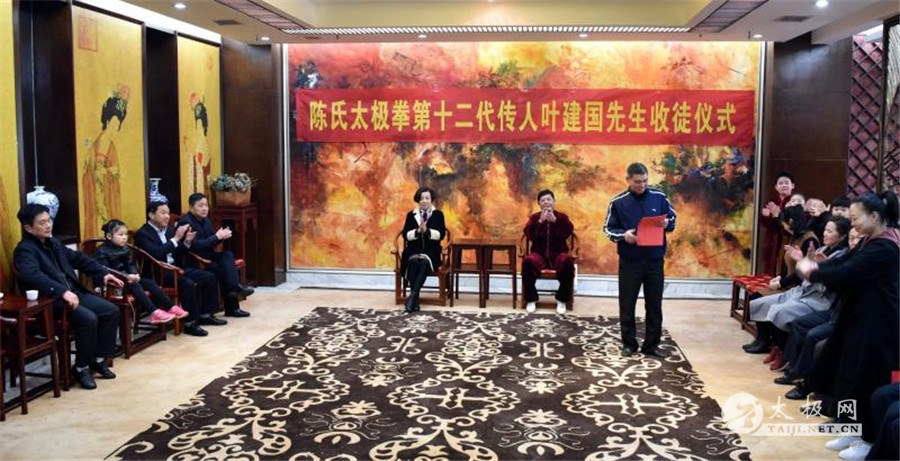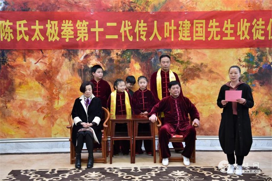 收徒仪式开始,陈氏太极拳第十二代传承人叶建国老师向太极拳历代宗师敬香行礼,感念先祖创拳之恩德,追忆先贤传拳之辛劳。随后,新入门弟子依次上前行拜师礼、递交拜师贴、敬拜师茶,师父回礼。收徒仪式圆满礼成,弟子们向见证人鞠躬致谢。 拜师仪式