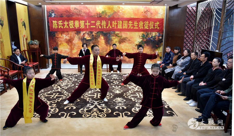(太极网报道)春暖花开正当时,太极传承添芬芳。3月17日,湖北省大冶市太极拳协会传来喜讯,协会会长、大冶市众妙太极馆馆长兼总教练、陈氏太极拳第十二代传承人叶建国收徒仪式于国际金湾大酒店举行,肖学武、曹柳怡两名太极拳爱好者通过传统拜师仪式拜人叶建国老师门下,正式成为陈氏太极拳第十三代传承人,为太极拳的传承和传播事业注入新力量。