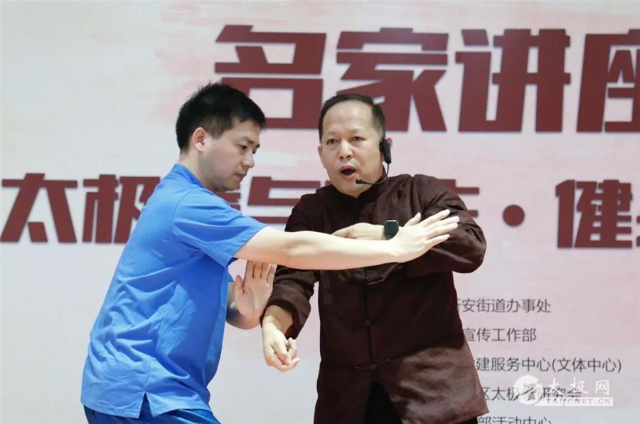 (太极网报道)为促进深圳宝安区新安街道群众性体育运动的蓬勃发展,新安街道办事处举办了以“运动·健康·快乐·和谐”为主题的2019年新安街道社区太极拳交流赛系列活动。3月23日下午,交流赛活动之一——名家讲座“太极拳与健生·健身·防身”如约而至,标志着这场盛会正式拉开了帷幕。 莅临嘉宾 ▼ 新安街道党建服务中心副主任林毓彬先生 深圳市宝安区太极拳研究会会长谢勤先生 深圳市宝安区太极拳研究会名誉会长徐玉翠女士 深圳市宝安区太极拳研究会副会长刘海山先生 主讲嘉宾-方东升 ▼ 中国武术六段,国家一级社会体育指导员,陈式太极拳传承人,武术职业体育指导员,武术段位考评员、指导员,国际太极拳高级教练,深圳市宝安区东升太极文化促进会名誉会长兼总教练。 主讲嘉宾-宋斌 ▼ 中国武术七段,国家一级裁判,武术段位制指导员、考评员,国家一级社会体育指导员,杨式太极第五代传人,大宋体育产业股份有限公司董事局主席。 两位老师分别从陈式、杨式两大影响深远的太极拳法入手,与大家共同分享太极拳的起源和发展历程,讲解太极拳的理论体系,示范太极拳的基本功法,与拳友们共同互动,分享交流。现场气氛热烈,拳友们与老师热情互动、积极学习,收获颇丰。 太极拳做为最具有独特魅力的拳种,已远远超出武术的范畴,从阳春白雪到下里巴人,滋润着每一个爱好传统文化的中国人,太极拳的普及更需要社区太极拳爱好者的努力,带动越来越多的市民参与全民健身,为活力新安增彩。 责任编辑:太极网小田 |