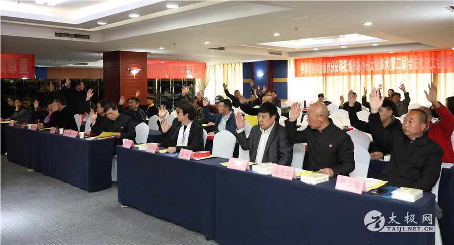 (太极网讯)3月25日,焦作陈小旺太极拳术研究会第二届会员代表大会在焦作隆重召开,百余名研究会成员齐聚一堂回顾历史、展望前景,共商研究会发展大计。换届选举产生研究生新一届领导班子,大会推举赵庆保担任会长,党国俊为常务副会长,张喜欢为秘书长,副会长王乾升、李立昌、毛春善、张昕、王占平、司爱卿、张军、周民军、张令忠、吴祖强等。
