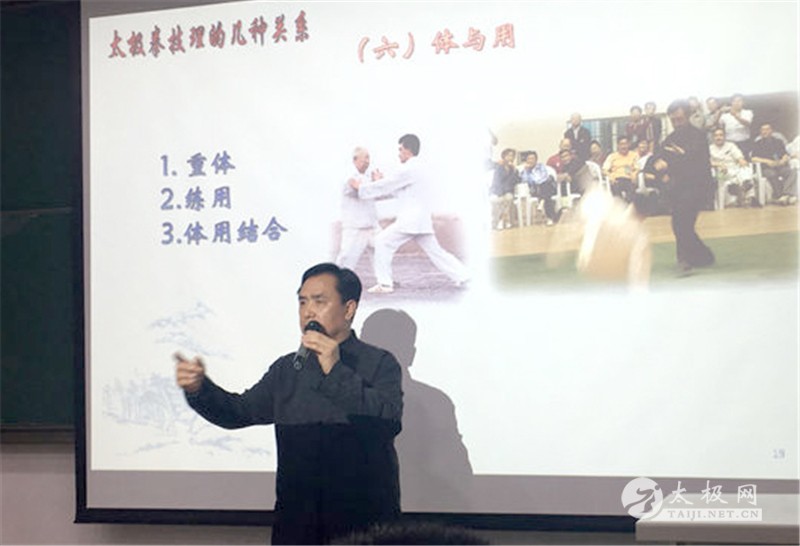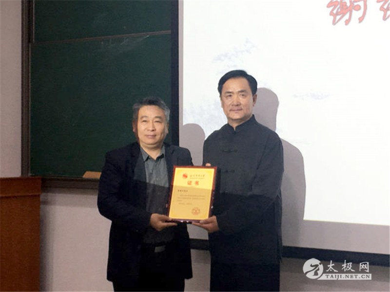 讲学现场座无虚席 2019年3月27日,王其和太极拳代表性传承人李剑方先生应邀走进北京体育大学中国武术学院进行题为《太极拳的文化内涵及功理功法》的讲学。 李剑方先生讲解“太极拳的功理功法” 国家中直机关有关领导和北京体育大学中国武术学院书记张丽丽、院长马学智,北京体育大学中国武术学院教授杨玉冰,北京体育大学教授、太极拳名家黄康辉,北京体育大学教授、学报编辑李勇勤,北京体育大学博士、北京市人大代表刘柏,《世界太极拳蓝皮书》执行副主编、中国社会科学院金融学博士苏敬斌,北京大学高等人文学院研究员、清华大学武术文化研究中心秘书长刘高升,北京体育大学武术部教练杜军明,北京体育大学医师、杨利伟航天员研究中心研究员汪毅,金融专家、博士欧阳溪伟等参加了讲座。 李剑方先生讲解“太极拳技理的几种关系” 太极文化源远流长,是中华武术传统文化的精髓,太极拳既是一项健身运动,也是一项文化事业,既是运动风格的展示,也是文化情操的陶冶。 李剑方先生在讲学过程中进行现场演示 北京体育大学是高校体育健身项目中人数最多的一所院校。在北京体育大学推广中华经典文化,培养大学生对太极拳的兴趣,打造校园太极文化特色,提升大学传统文化内涵具有更积极的现实意义。既有利于大学生强身健体,又有利于大学生修身养性,同时更加有利于培养和弘扬民族精神和落实“终身体育”的教育理念。通过李剑方先生《太极拳的文化内涵及功理功法》的讲学,将有助于进一步提高广大学生对传统文化的兴趣,积极营造健康向上、充满正能量的校园文化氛围,努力实现高校对太极拳文化的大力弘扬和科学传承。 讲学现场,座无虚席、秩序井然。此次讲学受到了学生的热烈欢迎。北京体育大学中国武术学院马学智院长还向李剑方先生颁发了讲学证书。 讲学过程中学生与李剑方先生交流互动 李剑方先生是国家级“非遗"王其和太极拳代表性传承人。现任河北省武术协会副主席,河北省太极拳协会名誉主席,河北省王其和太极拳协会名誉主席,《世界太极拳蓝皮书》专家顾问,《人民网》“人民太极”栏目首席专家;河北大学、河北师范大学特聘研究生导师,河北科技大学、河北省体育学院、邯郸学院客座教授;中国书协会员,中华诗词学会会员。出版发行了《太极文武论》、《王其和太极拳图册》、《耕暇集》、《求索》、《草书太极拳论》等专业书籍。 中国武术学院院长马学智为李剑方先生颁发讲学证书 李剑方先生和河北省王其和太极拳协会主席檀杏敏女士与专家学者们合影 本站责编:太极网萌 |