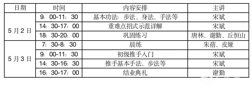 “入门引路须口授,功夫无息法自修”。 为了回馈广大拳友,并进一步提高杨式太极拳爱好者的技术水平,大宋体育-广州站将于五一期间举行传统杨式太极拳基本功法以及推手的培训。 培训安排 培训日期: 2019年5月2日~3日 培训时间: 上午9:00-11:30 下午14:30-17:00 晚上18:30-20:00 培训地点: 大宋体育-广州站-五山拳馆(天河区茶山路263号605房) 交通:地铁三号线五山站B1出口,向东步行300米,汉庭酒店楼上。公交华农大正门站,向东步行100米,汉庭酒店楼上。 培训内容: 传统杨式太极拳基本功法 传统杨式太极拳重难点招式示范详解 传统杨式太极推手基本功法 培训安排: 培训讲师: 宋斌:中国武术七段、杨式太极第五代传人。 培训费用: 原价1500元,会员优享价800元。 咨询联系: 丹丹 13650778334 本站责编:太极网萌 |
