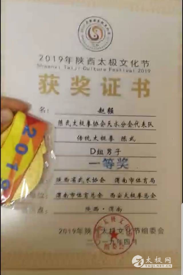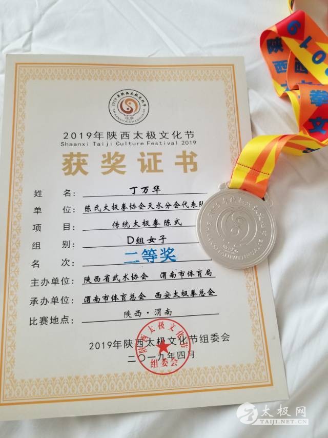 陕西太极文化节于4月12日在陕西渭南体育中心圆满落幕,共有来自陕西、山西等10个省市和美国、韩国、泰国、日本、法国、黑山等7个境外国家的259个代表队共三千余名运动员参赛。活动期间还举行太极拳比赛、晨练、太极文化论坛和闭幕式。大赛规模之大、规格之高,创当地历史之最,盛况空前。 天水陈式太极拳丁琦团队挟陇上拳手风釆,出征2019年陕西太极文化节太极拳赛场,弘扬太极文化,传承中华文明。