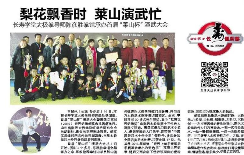 又是一年春风来 千树万树梨花开 2019年4月14日上午,中国龙口首届“莱山杯”国际演武大会暨高国文再创(2019)世界纪录颁奖典礼在美丽的港城山东龙口陈彦胜太极武术院隆重举办,山东省陈氏太极拳马虹拳法研究会会长胡晓林、副会长刘辉以及上海等分赛场代表共计100多人参加盛会。太极网通过网络把盛会传向全国各地,当日全球太极拳武术爱好者一万多人观看比赛直播,山东省龙口市《今日龙口》报社记者亲临现场做了全程采访报道。 龙口市瀚淋武苑分赛场张文慧致辞 山东省陈氏太极拳马虹拳法研究会会长胡晓林致辞 上海分赛场代表吴荣博教授致辞 龙口市七甲镇莱山首家太极拳培训中心 冯家村村委主任冯健致辞 金、银、铜牌颁奖 贡献奖颁奖 世界纪录颁奖 高国文荣获2019年“世界上后空翻翻上高凳世界纪录”,证书编号20190300019。高国文可是龙口的小名人,他是陈彦胜的入门弟子,曾荣获“中国武术十佳少年”等称号,多次参加全国各类武术比赛,共获金牌17块,尤其是2016年创造“世界上单手连续后手翻年龄最小的选手”世界纪录,随后又两次创下世界纪录,三次均为难度最大的挑战。 形象大使颁奖 颁奖结束后,现场进行了精彩了武术表演:太极拳、螳螂拳、太极刀、太极剑、少林棍等在空灵圆通的音乐旋律中,陈氏太极拳的传人们纷纷登场,或表演集体项目,或表演个人项目,一招一式行云流水,一动一静飘逸潇洒,一迎一送刚柔相济,把在场所有人都带到了太极武术的神韵当中,体会太极武术的精髓。 最后,在音乐《春江花月夜》的优美旋律中,陈氏太极拳第十二代传人、国际太极拳大师马虹先生的入室弟子、中国传统陈氏太极拳网校校长、中国太极网龙口分站站长、龙口市陈彦胜太极武术院院长陈彦胜表演了太极养生八式。 该套路由传统陈氏太极拳精华动作整合而成,陈彦胜打得快慢相间、缠绕连绵、刚柔相济,尽显陈氏太极拳魅力。据介绍,这套拳法一呼一吸、一招一式都是对习练者生理和心理的调节,尤其适合生活节奏快,身心压力大的白领及身体亚健康的中老年人长期练习。是太极文化走进莱山的重点普及套路。 在典礼结束时,陈彦胜表示,愿人人拥有强健的体魄、美好的心情、健康的心理、充沛的精力,在人生的赛场上赢得更多的鲜花和掌声。 本站责编:张欢 |