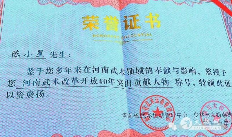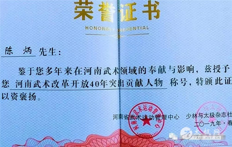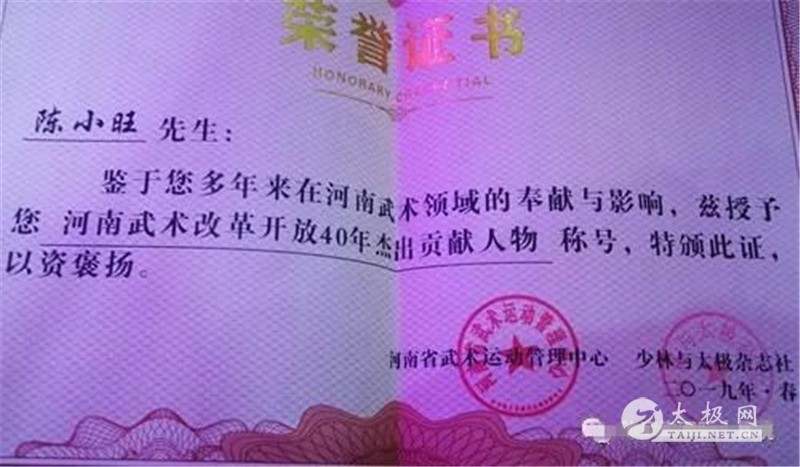 一个国家,一系文化,数千年绵延不绝,自信与世界共享。 河南是中国武术大省,是闻名于世的少林武术和太极拳的发源地,改革开放40年,中原大地涌现出了许许多多功勋卓著、光芒耀眼的武术人物。 河南武术年度盛典合影留念 2019年4月19日,河南省电视台1500平米的演播大厅,一场载入史册的中原武术大盛会在此隆重拉开帷幕。在河南省武术运动管理中心、《少林与太极》杂志社历时半年的运筹下,一批改革开放40年来为河南武术做出巨大贡献的大咖评选终于揭晓了。他们有将毕生精力奉献给武术的老武术家,也有风华正茂年富力强的新一代领军人物,这其中让人惊讶的是,有三位获奖者竟来自同一个村的同一个家庭,他们就是陈小旺、陈小星、陈炳,此叔侄三人系太极拳宗师陈长兴、陈发科的直系后人,数十年都奔波于世界各地,为陈氏太极拳的推广和发展做出了巨大贡献,此次活动中被评为河南武术“改革开放40年杰出贡献人物和突出贡献人物”。 一个家族,一套拳,四百年一脉相传,助推太极拳风靡于世。 陈小旺,1945年出生,太极拳发源地陈家沟陈氏第十九世,陈氏太极拳第十一代传人,国家级非物质文化代表性传承人,被尊为陈氏太极拳掌门人,改革开放初期河南武术的先行者,是将陈氏太极拳向国外推广普及的领军人和重大贡献者,在国内外武术界享有盛誉,被央视评为传播中华文化“中华之光十大人物”奖。 陈小星,1952年出生,陈小旺胞弟,陈氏太极拳第十一代传人,现任中国首家太极拳专业学校、陈家沟太极拳学校校长,陈家沟陈氏太极拳协会会长,陈家沟太极拳协会终身顾问。一生守护陈家沟,为发源地培养了一批批太极拳精英,学生遍及世界各地,被誉为陈家沟太极拳守门人。 陈炳获“河南武术改革开放40年突出贡献人物”称号 陈炳,1971年出生,陈氏太极拳第十二代传人,毕业于上海体育学院。自幼随叔父陈小旺、陈小星习练家传拳法,获得全国武术太极拳、剑、推手冠军,河南省太极拳全能冠军,温县国际太极拳年会交手擂台赛冠军,常年授拳于世界各地,在国内外有百余家太极拳传习场所,被联合国环境生态保护组织评为“联合国青年陈氏太极拳形象大使”。现任陈家沟太极拳协会会长,陈家沟国际太极院院长。 本站责编/瑞瑞 |