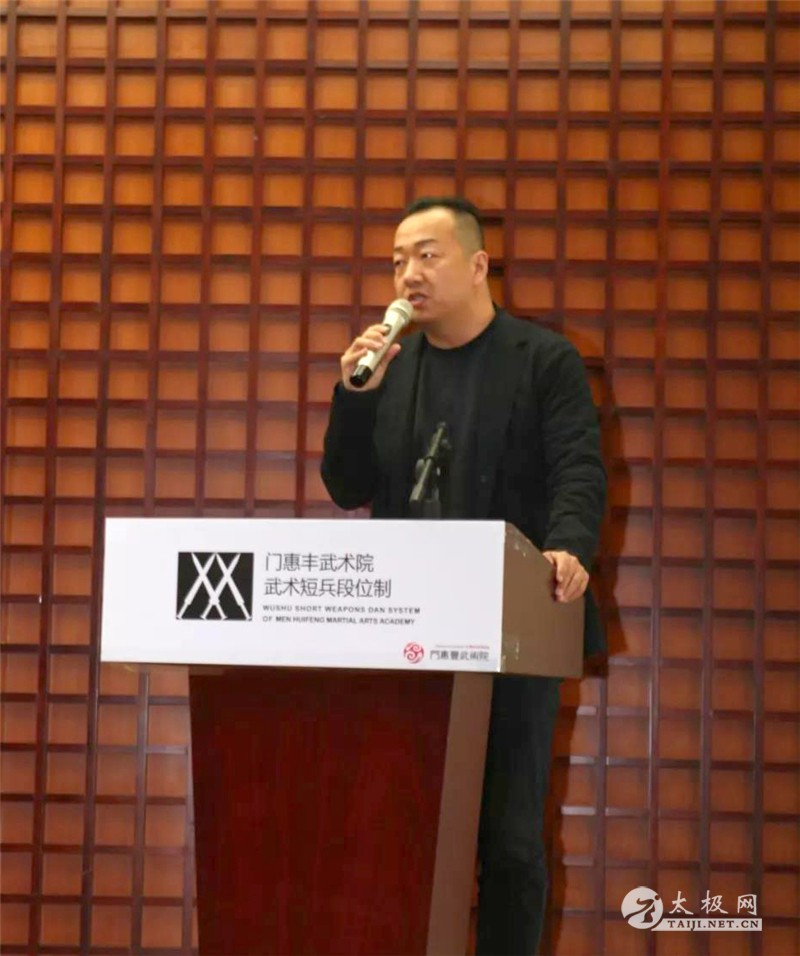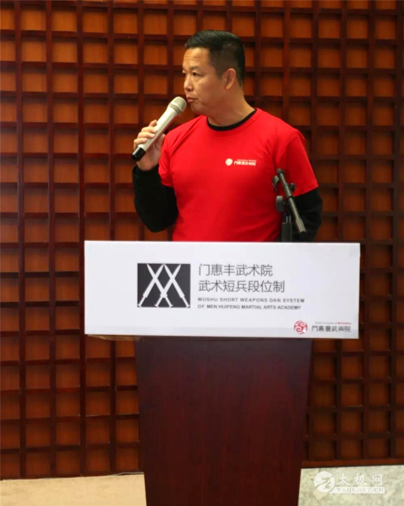 2019年4月20日,门惠丰武术院武术短兵段位制新闻发布会在北京体育大学举行,由门惠丰武术院院长门敢红老师和执行院长高飞老师共同主持,到场嘉宾有门惠丰、朱瑞琪、王华峰、孟祥红、高鹏、王战军、王天明等武术界前辈和体育及文化界人士。 短兵是中国武术兵刃中以剑、刀为代表的短兵器的总称。武术短兵是在武术刀、剑等技法基础上发展起来的一项对抗性武术竞技项目。是中国古老传统的剑刀格斗技法的延续,根基深远,内涵丰富。 高飞院长主持开场介绍嘉宾 嘉宾门惠丰教授 嘉宾朱瑞琪老师 嘉宾王华峰老师 嘉宾孟祥红老师 嘉宾高鹏老师 嘉宾王战军老师 嘉宾王天明老师 嘉宾金波老师 门敢红院长发言、介绍武术短兵 发布会开始由高飞院长隆重介绍了到场的各位嘉宾,之后由门敢红院长介绍武术短兵推广的意义和重要性,并对段位制概念和未来的发展做了详细的介绍,门院长表示:当今武术对抗性比赛都是以外国拳术为主,而有着几千年文化底蕴的中国武术,却被埋没在了体育运动项目的深处,中国武术除了提升身体素质外,更能够提升人的精神高度,不应该被世界遗忘。本次发布会意在让武术短兵项目和比赛有所遵循,为武术整体产业升级奠定坚实的基础,为中国武术国际化迈出坚实的一步。 王天明老师讲话 孟祥红老师讲话 王战军老师讲话 高鹏老师发言 王华峰老师发言 朱瑞琪老师发言 门惠丰教授发言 高飞院长和门敢红院长对练表演 王战军老师和门敢红院长对练表演 随后主席台在坐的嘉宾陆续进行了发言,门院长和高院长亲自在会场进行了武术短兵对练的演示,门敢红、王战军两大功夫新生代优秀代表人物也即兴上场进行短兵实战对练,剑气纵横,精彩纷呈。发布会的最后门惠丰教授致词,宣布门惠丰武术院武术短兵段位制正式启动,嘉宾们合影留念。 门院长和高院长与嘉宾们合影 本站责编:太极网萌 |