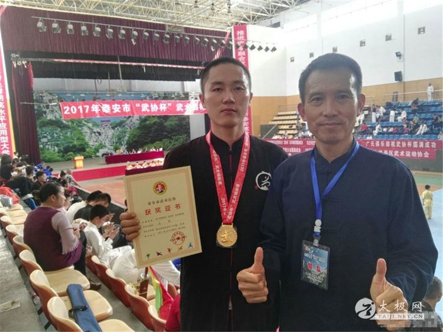 抛开浮华与躁动,以执着和真诚之心待之,无论何时遇见太极,人生轨迹都会发生华丽的转折。陈义,平凡而自律之人,当他二十多年前偶遇太极,便爱上了太极,从此日渐摆脱病痛,以真真执着之情,拳拳公益之心,一步步谱写太极人生华章。 陈义太极拳姿 只因遇见 便得始终 陈义自小便喜欢运动。他有着自己的一套平衡工作和运动的健身理念,“用心做事,强健体魄”,即全心全意,精益求精。用强健的体魄支撑高效率的工作,创造一流的业绩。他认为“7+1>8”,即七小时睡眠加一小时运动,其健康指数要远远大于八小时的睡眠所得。为了以饱满的精力应对紧张的工作,无论多么忙碌,他都坚持每天抽出至少一个小时来做运动锻炼,还积极参加各类体育活动。 从1981年,满怀热情步入了工作岗位,十数年间,陈义积极奋进、勇于创新。在各个岗位上都取得了全省乃至全国一流的业绩和荣誉。然而,由于常年工作压力大、饮食不规律等原因,陈义在1995年患上了慢性胃炎。一时间,体重骤降二十斤,体质大不如前。此后,多年就医吃药,却是时好时坏。 “胃不和,寝不安”,病痛缠身使他经常失眠,严重影响了生活工作。为尽可能恢复体能,提高睡眠质量,他开始每晚强制自己散步或慢跑,数年间无论风雨寒暑都不曾间断。 陈义带领大家练拳 1999年,一次晚餐后如常散步途中,陈义偶然发现在泰安红门路林校体育场上,有多人在打太极拳。那刚柔并济、急缓相间的身影不觉间吸引他驻足观看。在交流中,陈义发现这种拳术通过入静放松,以意导气、以气催形的反复习练,达到修身养性、陶冶情操、强身健体的效果。这让陈义萌生了一个念头:太极拳应该是目前最适合自己的健身运动了。 花了几天时间陈义找寻到一些太极拳方面的书籍资料认真研读起来。他发现太极拳是一种极具生命智慧的中国武术,它承载了数千年华夏文明精华,融河洛文化、周易八卦、中医经络、气功等养生理论为一体,以阴阳开合、圆融进退、辩证等哲学原理为核心,通过内外兼修,达到技击对抗、颐情养性、强身健体的目的。这样的认知使他对太极拳的兴趣开始浓郁起来。 陈义带领学员们练拳 他先是跟随泰城当地的老师学习太极拳,从最基础的入门基本功学起,一招一式都无比认真。在真正接触太极拳后,他切身体会到太极拳的精妙,对比书中所得,顿感太极之博大精深。 从此,便走上了勤学苦练的道路,并越发投入进去。先后学习了陈、杨、武、吴、孙、东岳等各派三十余套太极拳械,还学习了八段锦、五禽戏、易筋经、岱宗掌、马王堆养生功等。后又跟随赵幼斌、惠合同两位老师学习了传统杨氏85式太极拳,跟随武当山张清然老师学习了三丰108式太极拳…… 偶然遇见太极,成就了他的人生转折,而自律与执着则是促成这偶然背后的必然因素。从陈义身上能看到其自律能力之强,窥见其性格之坚韧。这些美好的品质,将在太极之路上,助其不断抒写专属的精彩篇章。 既遇明师 倍加专注 初学太极拳时,陈义曾学过陈氏五十六式竞赛套路,07年他又学习了陈氏太极拳老架一路,不禁对其刚柔相济、松活弹抖的风格所着迷,空余时间便多加揣摩研习。已在太极之道浸淫数年,随着习练境界的不断加深,陈义愈加深知太极拳的博大精深,是值得用一生去探求的。原本的习练所得已不能满足其对太极拳求知钻研的欲望,他渴盼遇到能够为他打开新途,突破瓶颈之明师。 陈义与恩师王西安合影 2010年,国际太极拳王、国家首批非物资文化遗产传承人王西安大师来泰安授拳。陈义有幸得见,瞬间便被王西安拳法迅、猛、灵、脆、闪惊弹的特色和陈氏太极拳刚柔并济、快慢相间、轻灵闪脆的独特魅力深深吸引。他毅然决定追随王西安大师,开始了陈氏太极拳的学习生涯。 陈义与恩师王西安合影 此后5年间,他跟随王西安大师的脚步辗转各地。交通食宿全部自理,风尘仆仆,有时一去几个月,家人也不理解。但是他从未停止脚步,坚持完善自我,用执着打动家人,凭借自身强大的自律精神和对陈氏太极拳的痴迷,陈义六赴陈家沟,四下杭州阿里巴巴,十余次跟随王西安大师的培训班前往河南、泉州、淄博、威海、深圳、贵安、宝鸡等地。在辗转的旅途中,他坚持每天学拳练拳,并得到了王西安大师的指导,对太极的领悟不断提高。 恩师王西安指导陈义练拳 2015年,陈义终于获得了王西安大师认可并拜师入门,成为王西安拳法第二代传人、陈式太极拳第十二代传人。拜师后,陈义也没有停下脚步,仍每年抽出时间跟随王西安大师学习。如今,他已经掌握了陈氏王西安拳法的所有套路:陈式老架一二路、新架一二路、入门三式、八式养生功、24式陈氏太极拳、42式养生增气功、散手、推手、桩功、太极刀、太极剑等。 陈义拜师成为王西安弟子 多年的磨砺让陈义对太极拳的喜爱深入骨髓,正是这份痴情、专注和执著,让他的太极之路越走越明晰。 公益传拳 弘扬国粹 “太极给了我全新的人生。”多年习练太极拳,陈义的身体状况、精神面貌、生活状态都发生了巨大改变。凡是认识他的人都能从他身上看到太极颐养性情、强身健体的功效。眼见他的变化,身边的朋友受到影响也纷纷加入到了习练太极的行列。 陈义带领学员在全民太极行动计划上表演太极拳 如何让国粹太极更好的传承发扬,造福大家呢? 2014年,陈义兴起了利用闲暇时间传承太极