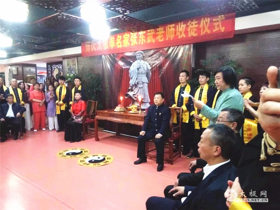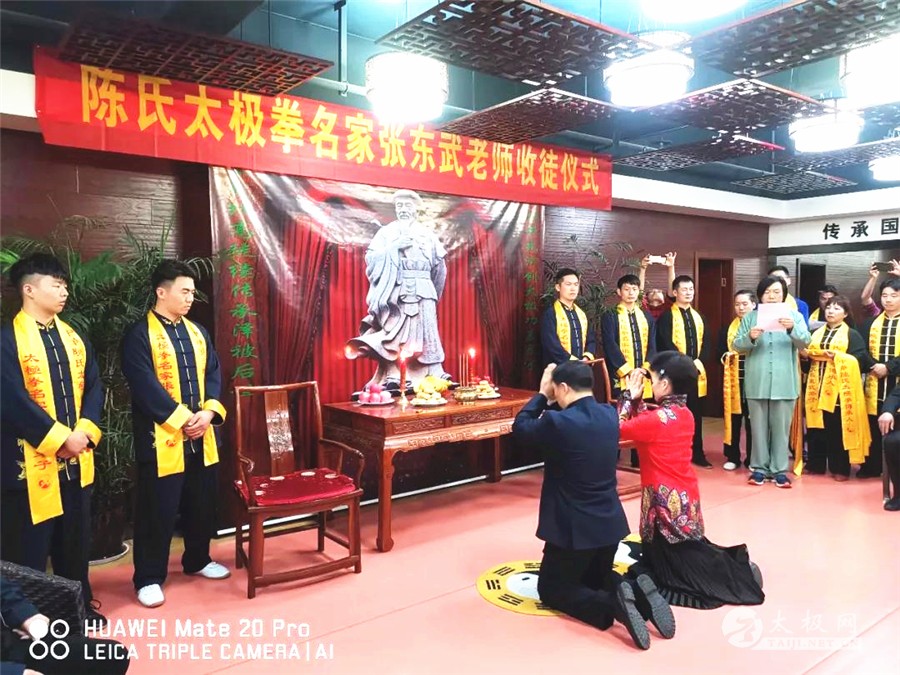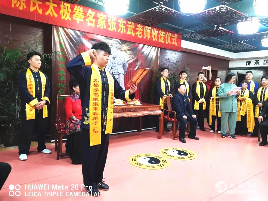 (太极网报道)5月3日,陈正雷大师入室弟子、陈氏太极拳第十二代传人张东武老师收徒仪式于郑州东武太极研修院内举行。数十名优秀太极拳爱好者经过多年的磨练终于在各个方面得到师父认可,正式成为太极拳传承人,肩负起传播和推广太极拳的历史使命。栉风沐雨三十载,砥砺奋进传薪火。张东武是中国武术七段、国际太极拳年会“太极十杰”之一、中华太极拳杰出传承人、国际太极拳文化传播大使、国家一级拳师、陈式太极拳高级教练、河南省太极拳协会副主席。 见证此次收徒仪式的嘉宾有:郑州市老年人体育协会副主席王源海、中铁七局郑州铁路工程指挥部党工委书记陈喜庆、东武太极拳友会副会长康渌、一品江南总经理王滨、上海三凯工程咨询有限公司副总经理朱孔池、东武太极研修院办公室主任张晓力。 拜师仪式开始,张东武老师携夫人徐勤兰老师向祖师陈王廷焚香叩拜,祭奠先贤。随后,新入门弟子依次上前为师父师母奉茶,行拜师礼、递交拜师贴,师父回帖,为弟子们一一披挂绶带并颁发传人证书,仪式进行有条不紊、庄严肃穆。 张东武老师首先向赶来参加收徒仪式的嘉宾表示感谢,并希望弟子们能够坚守一名太极拳传承人的责任和义务,全力以赴为太极文化的发扬光大不懈努力,为太极拳的传播和推广做出自己应有的贡献。 张东武老师入室弟子张宇浩带领新弟子宣誓,谨遵师父教导,遵纪守法,恪守门规祖训,用心习拳,体悟太极文化,为太极拳的传播和推广贡献自己的力量。 郑州市老年人体育协会副主席王源海代表郑州市体育局、郑州市体育总会、郑州市老年人体育协会授予东武太极研研修院“先进单位”称号。 作为陈式太极拳传承人,张东武老师与夫人徐勤兰老师30余年来一直都在弘扬太极拳文化的道路上奔波不止,通过收徒来让太极拳发扬光大。张东武老师常说:太极拳是我国的国粹,想要流芳百世,就必须得后继有人。现在是太极拳发展非常好的时期,国家有政策扶持,太极拳传人更要趁势而上。 最后众弟子同师父、师母及与贺嘉宾集体合影留念,留下这一值得纪念的时刻,拜师仪式顺利完成! 责任编辑:太极网小田 |