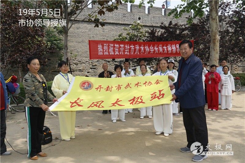 (太极网 开封讯)近日,开封市武术太极拳发展迎来喜事,开封市长风太极拳辅导站经市武术协会批准于5月5日正式成立,成为该武术协会正式团体会员单位,成立仪式在开封迎宾门古城墙下举行。开封市武术协会主席李德祥,开封市武术协会表演团团长刘新凯,开封范鸿信陈氏太极拳学会秘书长张明,陈氏太极拳(小架)第十一代传承人王金堂及开封太极拳多名爱好者参加了该站的成立仪式。 开封市武术协会主席李德祥先生在成立仪式上发表了热情洋溢的讲话,肯定了长风太极拳辅导站前期工作,并提出希望,希望长风太极拳辅导站在市武术协会的领导下,植根基层,深入开展太极拳全民健身活动,更好的传播、传承太极拳,引领健康生活。武术表演团团长刘新凯女士致祝贺词,随后李德祥与刘新凯代表开封市武术协会向该站授旗。 长风太极拳辅导站站长朱风云女士及副站长马玉省女士向该站技术顾问张明、王金堂二位老师颁发了特聘证书。成立仪式在天下太极一家亲的气氛中圆满结束! 新闻整理:开封王寿山 本站责编:太极网杨超 |