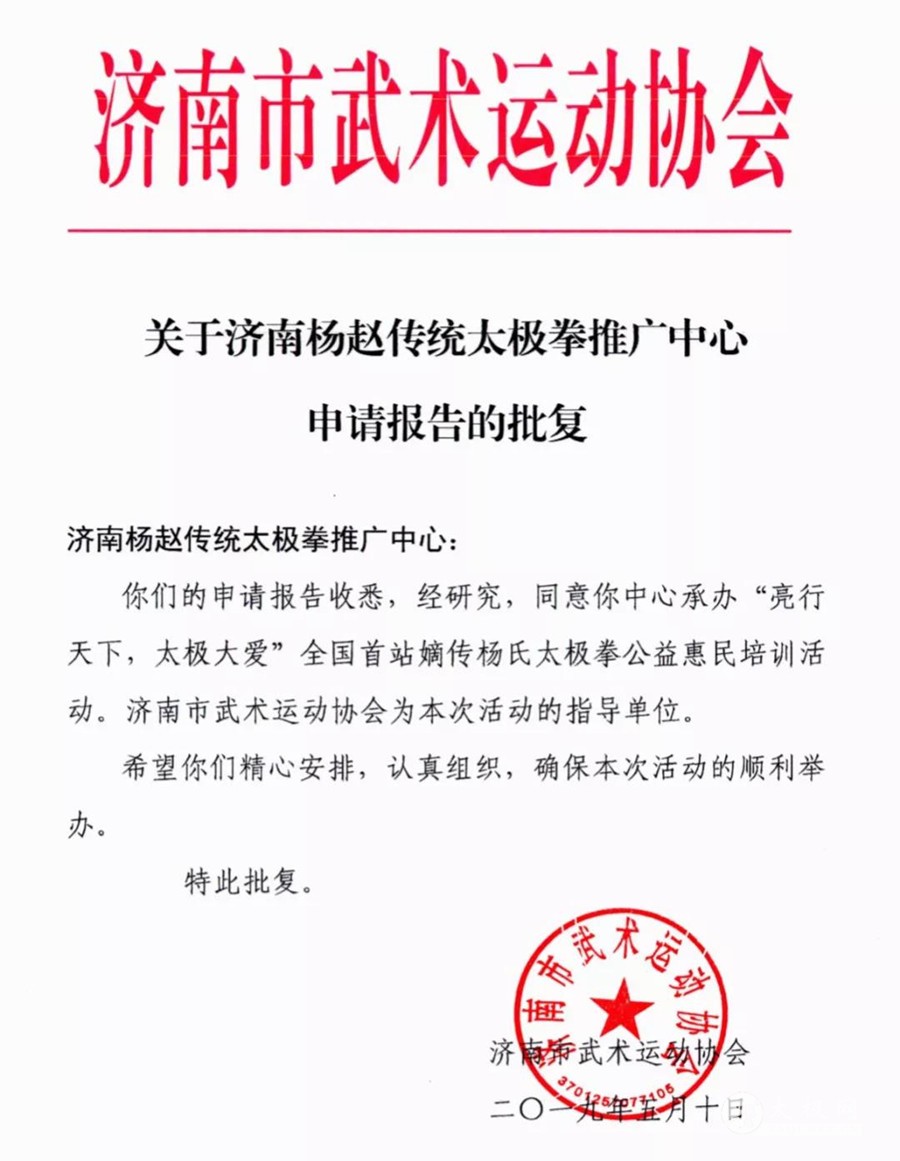 自杨氏太极拳第四代传人、一代太极名宿、杨澄甫宗师侄外孙赵斌先生1946年解甲归田,开始在西安义务传授杨氏太极拳以来,育人无数,造福万千拳友、家庭,功德无量,形成了热心公益事业的杨赵太极拳文化。西安永年杨氏太极拳学会成立35年来,坚持为广大群众义务普及太极拳,坚持推动太极拳全民健身活动,辛勤耕耘、低调务实地做实事、做好事的优良传统。 为了助力广大杨氏太极拳爱好者实现学好太极拳的愿望,响应习近平同志在党的十九大报告中提出“实施健康中国”战略,西安永年杨氏太极拳学会去年七月开始特别推出以陕西省内为主的送拳下区县的公益惠民教学活动,已经进行了8个区县的教学,取得了良好的社会效应。各地分会和权属组织纷纷申请,希望此活动能走出陕西,惠及更多地区,西安永年杨氏太极拳学会决定由常务副会长赵亮老师担纲,开展主题为“亮行天下,太极大爱”的全国太极拳公益惠民培训巡讲计划。此活动也是人民网、人民日报社主办的人民太极“太极公益 健康中国”活动的一部分。经由济南杨赵太极拳推广中心积极申请,此活动的首站将在泉城济南举行,时间定于于2019年5月19日至5月23日。 本次培训班由杨氏太极拳第六代嫡传、中国武术七段赵亮老师担任主教练。本次培训的主要内容为杨氏太极拳85式动作的规范和提高、进一步理解拳架、掌握正确的练习方法,加深对拳理拳法的理解。本次培训班将采用大班上课,学员将获得老师盖章、签名的结业证书。 夏初长,风暖人间草木香,相约泉城,幸福绵长。让我们一起感受明师风采,领略明师的精湛拳艺,体会太极拳的无穷魅力,学习无私奉献的杨赵太极精神。 培训有关事宜: 一、 培训人员: 杨氏太极拳爱好者 二、培训时间: 2019年5 月19日至5月23日 时间按排: 早上6:50至7:50晨练 上午9:00至11:30上课 下午1:30至4:00上课 三、报到、培训地点: 山东省济南市二环东路1599号环联鲁菜皇商务酒店(七里堡茶城三楼) 四、培训内容: 杨氏八十五式太极拳 五、费用: 培训费每人980元(主要用于场地费等)。交通费、食宿费、服装费自理。 六、报名及缴费方式: 1、报名时间:自即日起至5月18日止。 2、报名缴纳费用: 交通银行账号:622260 1049853199499 伊玉梅 微信转账:13853199490 七、报到及要求: 报到时交1寸彩照,结业证书用。 八、报名联系人: 关瑞云:13001736708 孟庆利:13906418751 九、住宿推荐: 环联鲁菜皇商务酒店;客房标间158/天,含双早餐,午餐、晚餐300元/10人。 十、交通路线: 乘坐146、106、165、70、75、113、16、K55、K93、BRT4路到鑫达小区下车。 十一、指导单位: 济南市武术运动协会 十二、主办单位: 西安永年杨氏太极拳学会 十三、协办单位: 济南杨赵太极拳推广中心 赵幼斌太极文化公众号 习太极公众号 第二站 青岛 6月5日-9日 联系人:付然 联系电话:18660250767 本站责编:张欢 |