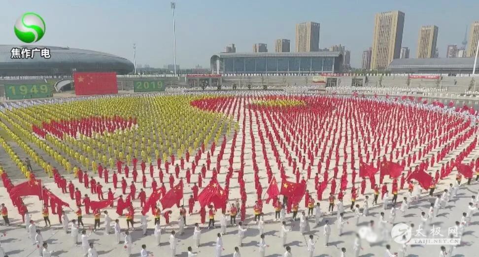 (来源:焦作广播电视台)5月11日上午,在全国太极拳健康工程系列活动——2019年太极拳公开赛启动仪式上,来自焦作市的12000名太极拳爱好者,集体演练了太极拳“八法五步”套路,齐唱歌曲《我和我的祖国》。这场规模宏大的快闪活动由焦作广播电视台精心编导,充分展现了焦作市喜迎“一赛一节”,向中华人民共和国成立70周年献礼的爱国情怀。 上午九点半,焦作市太极体育中心广场成了一片欢乐的海洋!在焦作籍太极拳世界冠军柴云龙和跆拳道世界冠军王朔的领唱下,太极拳爱好者们挥舞着手中的国旗,齐声高唱,现场气氛火热。 在场的太极拳爱好者中,有社区居民、机关干部、企业职工、体育社团,虽然他们年龄差距很大,但却有一个共同的心声,希望通过这样的快闪活动,为新中国成立70周年献上自己的一份礼物。 随着歌声接近尾声,现场响起了经久不息的掌声和欢呼声。鲜艳的五星红旗、激情嘹亮的歌声,汇集成一幅美好的夏日图景,奏响了一首和谐美好的感人乐章,为焦作市2019年太极拳公开赛增添了一抹绚烂的色彩,更为祖国母亲献上一份诚挚的祝福。 本站责编:太极网萌 |
