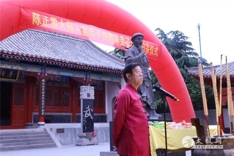 世代传承,薪火相传。 德厚流光,高情远致。 如果说世代传承,是按照血脉关系将传统文化、家风和技艺一代接一代地相继传承下去,薪火相传就是形骸有尽而精神不灭。 5月12日上午,国家级非物质文化遗产项目陈氏太极拳杰出传承人、太极拳“四大金刚”之一陈正雷先生入室弟子刘勇老师收徒仪式在南京举行,来自全国十六个省市和澳大利亚的52名爱好者,成为刘勇老师新收弟子。 陈氏太极拳第十二代嫡宗传人陈媛媛老师代表陈正雷弟子理事会发言 仪式结束后,当天晚上刘勇和新收弟子就乘车赶到达陈家沟,到时已是入夜,陈氏十九世、陈氏太极拳第十一代嫡宗传人陈正雷亲自到宾馆门口迎接,嘘寒问暖、满怀深情问大家,反复叮嘱工作人员要照顾好大家,体现了师爷对再传弟子的浓浓亲情。 2019年5月13日上午,陈正雷先生入室弟子刘勇率弟子认祖归宗仪式在太极故里陈家沟太极拳祖祠隆重举行。太极宗师陈正雷先生亲自带领嫡宗传人陈斌、陈娟、陈媛媛、入室弟子刘勇和刘勇新收的52名弟子,三代传人齐聚太极拳圣地,认祖归宗,礼拜太极先祖。 陈家沟陈氏家族理事会副会长陈景安先生祭拜先祖 陈正雷先生之子陈斌致祭文 陈正雷先生行礼、上香、敬酒、叩拜祖师 陈正雷先生携儿子陈斌,女儿陈娟、陈媛媛,入室弟子刘勇祭拜太极拳始祖陈王廷 刘勇率弟子祭拜太极拳始祖陈王廷,带领弟子行礼、上香 陈正雷先生入室弟子刘勇讲话,表达陈氏太极拳后世传人对先祖的敬仰之情,感谢陈正雷老师培育之恩,告诫弟子立志要传承和弘扬太极拳文化。 陈正雷先生致辞:我们的大家庭又添新丁,壮大了我们的队伍,为我们太极大家庭增添力量,祝贺你们找到了一位德艺双馨的师傅。我们三代传承人同时来到陈家沟祭拜先祖的目的就是要继承家风,薪火传承,世代沿袭,经久不衰,我们加入了这个大家庭,今后就要精诚团结、互相帮助、互相学习、把我们的家传技艺、民族文化发扬光大,让太极拳为我们的国家人民健身和人类健康多做贡献。 国家一级美术师,中央文史研究馆书画院研究员王德恭老师讲话 陈斌、刘勇、陈娟、陈媛媛带领大家共同演练陈氏太极拳三金刚 参天之木必有其根,环山之水必有其源;五十年前,陈正雷先生正是从这里出发,背负着家族的责任和历史的使命,开始了他丰富而又多彩的太极人生。三十年多前他的入室弟子刘勇来到陈家沟,跟随陈正雷老师学习太极拳文化和技艺。今天陈正雷老师和弟子三代传承人齐聚陈家沟太极祖祠祭祖,就是为了铭记先祖们的德行和教化,秉承师祖们精神和意志,不忘祖训,把家传技艺、民族文化发扬光大。 本站责编:张欢 |
