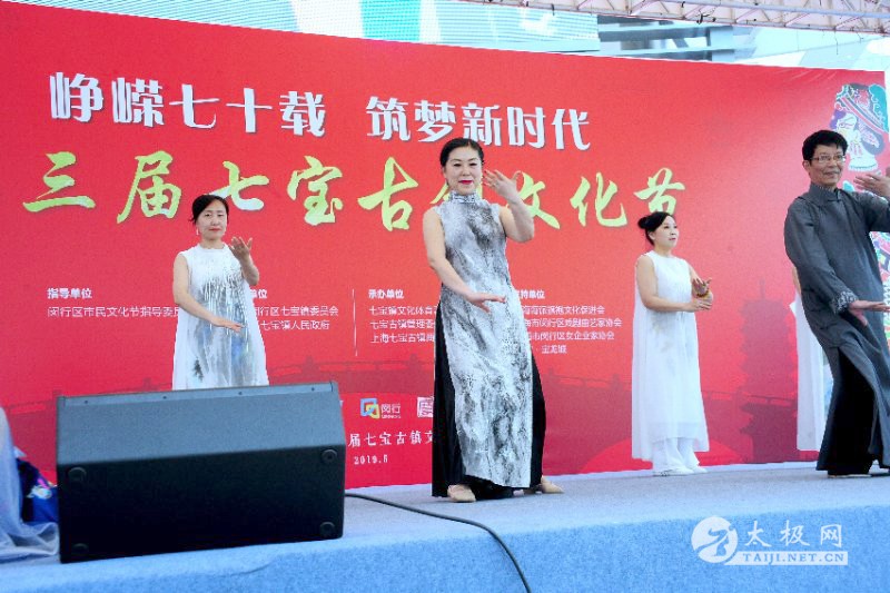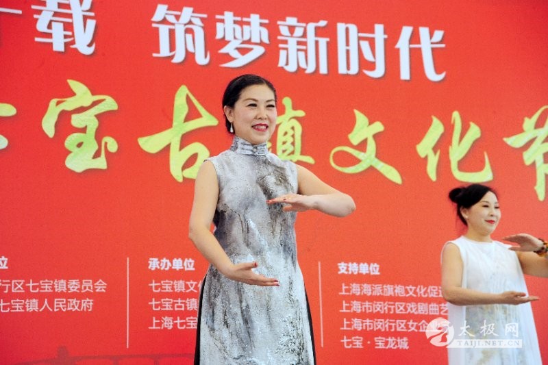 (钱承飞供稿)5月16日下午,第三届七宝古镇文化节“峥嵘七十载 筑梦新时代”为主题的海派旗袍文化专场演出在七宝宝龙城广场举行。在精彩纷呈的节目中,由上海海派旗袍文化促进会优秀团队之一的儒雁飞艺术团带给观众的太极旗袍秀别具一格。 在小提琴协奏曲梁祝声中,静功太极拳综合展示如一幅山水画:无极静功传承人陈钟民身着灰色长衫,儒雁飞艺术团团长姜为民身着奥黛款长衫裙裤 ,衫衣上是抽象随性的泼墨,另外四位女演员则是非常有仙气的手绘艺术旗袍,素雅淡定。演出中缓急结合,静动相宜,一位4岁的小姑娘展示了各种舞蹈武术,身穿旗袍的太极女与陈钟民老师精彩表演,获得了台下观众热烈掌声。 演出结束后,主创者姜为民接受媒体记者采访时笑着说,平时我们学练太极,是不用音乐的,而是在练太极过程中,各自体会身体和自然的融汇贯通。如今在舞台展现是经过加工和提炼,增加美感和观赏性,从中显示中华文化博大精深。 太极旗袍秀展示于2015年追随海派旗袍文化米兰世博行,在中国企业联合馆和世博园区主干道展示,其中有完整的无极静功十三势 ,在主演的两人中,再变换出静功缠丝太极拳108式的经典动作,同时还在太极对练中,通过三塌手、活步推手等太极动作,最后以“弱女子”战胜“强男子”完成演出,也就是姜伟民和陈老师活步推手最后那瞬间,总是她把陈老师推“飞”出去的场景,收到了良好的舞台效果。 从美和雅出发,太极旗袍展示这次选用的是梁祝,是因为今年是小提琴曲梁祝诞辰60周年,我们还有采纳其他中国风甚至跨越国界好听的音乐,配置好具有中国风视频背景制作,如水墨书法和书画或者青竹山河。从服装的考虑,突破穿传统太极服的习惯,采用奥黛、禅服,这是出自画家刘美玲老师的非遗手绘艺术旗袍 ,而陈钟民和4岁小演员身着的是2018上海时装周上海派旗袍设计大赛第一名获得的品牌凤瑞梅枝,期待吸引更多中青幼学生学习太极。据悉,每周四晚上和周六,在长宁区的无极静功学员班有一半学员都是在职的女性朋友。她们练习太极,除了开拓自己的心智,强身健体外,还有一份社会责任,那就是弘扬传统文化,激发爱国情怀,传承太极文化,让本土文化记忆不被遗忘,让特色文化基因入脑入心,让优秀文化传统根植普及推广,让更多不同年龄的朋友感受、体验太极的柔美灵秀,并与古雅和时尚相结合,从而爱上中华文化! 本站责编:太极网萌 |