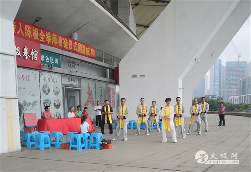 (太极网讯)2019年5月25日,佛山世纪莲体育馆华南太极馆内人头攒动,热闹非凡,陈氏太极拳第十二代传人陈根全老师收徒仪式在这里举行,徐建邦、杨晓东、表婵婵、陈柏伟、曾北水、张深、陈志峰、何芝等八名太极拳爱好者经过重重考验,正式拜在陈根全老师门下,成为陈式太极拳传承人。 出席仪式的领导及嘉宾有: 佛山市武术协会常务副会长余耀泉 佛山市武术协会名誉顾问、佛山市中医院骨科主任潘国铨 佛山市禅城区武术协会会长叶桂红 佛山市禅城区武术协会副会长黄家旗 佛山市禅城区武术协会秘书长杜睿 佛山市禅城区武术协会副秘书长戴子龙 南海市武术协会会长何健 南海市武术协会秘书长许凤金 佛山市武术协会常务副会长余耀泉主持仪式,整个仪式遵循传统,简洁庄重。陈根全老师首先向太极拳始祖敬香,以告收徒传承再续薪火。随后弟子们依次上前向师父、师母行拜师礼,递交拜师贴并接受师父回帖,新弟子在师父带领下叩拜太极拳始祖。在众人的见证下,拜师礼仪圆满完成,八位新弟子正式成为陈式太极拳传承人。 据介绍,本次拜师的新弟子中,有些已经学拳三年有余,有些半年有余。他们均已在佛山多年,有来自房地产的老总,有陶瓷界的大亨,也有做钢材、电器、五金等行业的精英。由于他们几个练功刻苦,勤学好问,对太极拳极有追求,也已久仰陈根全老师大名,对其品行极其敬佩,所以十分愿意拜在陈根全老师门下,希望对太极拳的发扬有所作为。 陈根全老师训话,他希望新弟子们能够恪守门规祖训,团结同道,学有所长。希望在今后习拳传拳的过程中,众弟子要多沟通,多交流,将陈式太极拳推向全国,推向世界。 本站责编:太极网萌 |