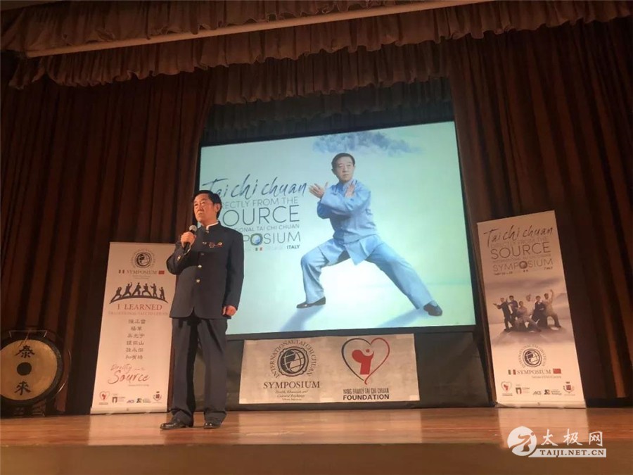 近日,全球太极人聚焦意大利,在国际时尚之都米兰周边的风情小镇萨尔维诺迎来一场前所未有的太极国际盛会,由杨氏太极拳基金会主办,在国际杨氏太极拳协会会长杨军发起和组织下第三届国际太极拳论坛在此隆重举行。中国太极拳六大流派代表性传承人和世界20余国家的太极拳爱好者欢聚一堂,让这里成为“世界太极小镇”,太极拳各流派代表性传承人陈正雷(陈式)、杨军(杨式)、吴光宇(吴式)、钟振山(武式)、孙永田(孙式)、和有禄(和式)等联袂出席,与世界各地拳友共同交流太极拳理论、技法和文化,演绎了一场激情洋溢的太极世界风。 萨尔维诺市长致辞 伦巴第大区区长致辞 开幕式现场