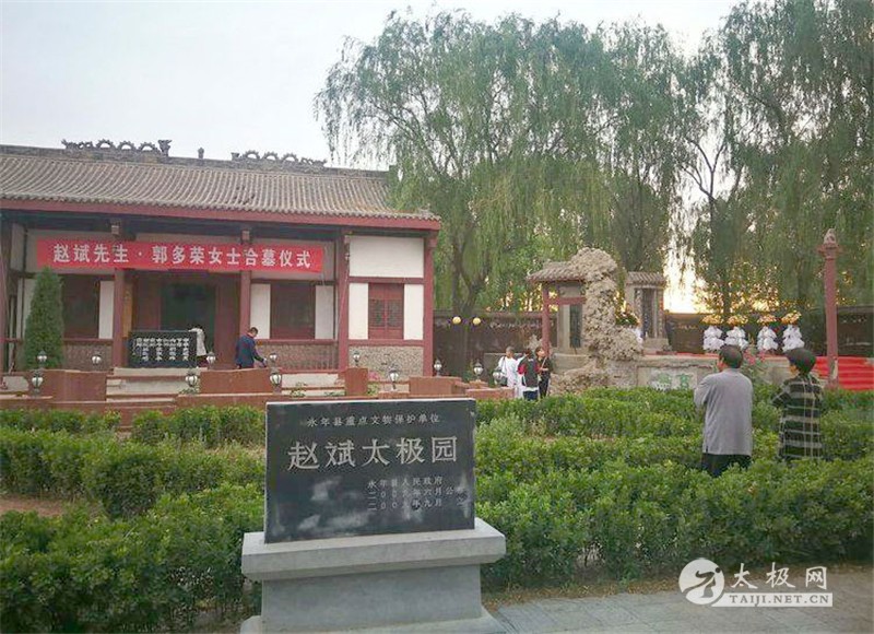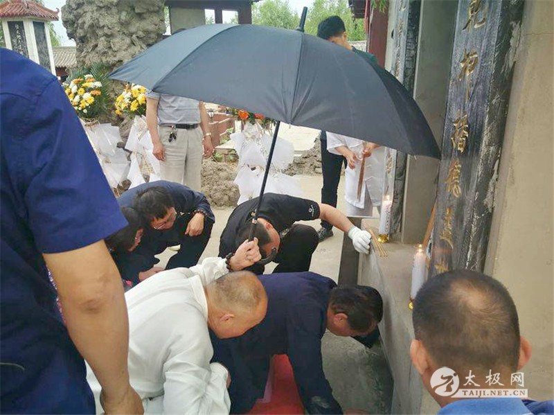 2019年5月28日早5点40分,赵斌先生和郭多荣女士合墓仪式在广府赵斌太极园举行。 参加本次活动的有邯郸市政协副主席贾红军,邯郸市应急管理局副局长王凤鸣(赵幼斌弟子),广府管委会副主任刘福印,广府管委会社会事业局局长郭立山,永年区二中副校长赵平安(赵斌侄),永年拳师韩青民、傅秋花、乔振兴,赵斌先师弟子代表李正、韩婷玉,郭多荣女士亲属,赵斌先师曾孙女赵允齐也随父赵亮前去,还有来自天津、温州、江阴、青岛、宝鸡、西安、渭南、汉中、石家庄、承德、邯郸等地的赵幼斌弟子等60余人。赵幼斌带领弟子们在太极园集体演练太极拳以表怀念。 郭多荣女士衣冠与赵斌先生骨灰合墓 亲属唱赞美诗以示怀念 赵幼斌致辞 邯郸市政协原副主席贾红军致辞 广府生态文化园区副主任刘福印致辞 赵斌弟子代表李正致辞以表怀念 赵幼斌带领弟子合练85式太极拳以示怀念 赵幼斌邯郸弟子关雪川、陈舟和王凤鸣组成的仪式工作小组前期紧张细致地进行准备工作。 帮忙竖碑人员 进场打扫太极园卫生 做好第二天早上的仪式准备工作 本站责编:太极网萌 |