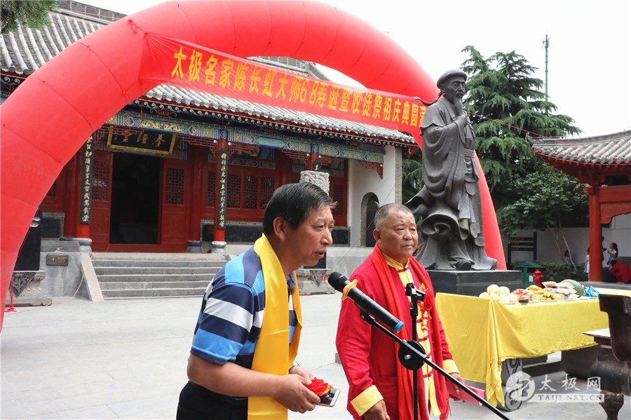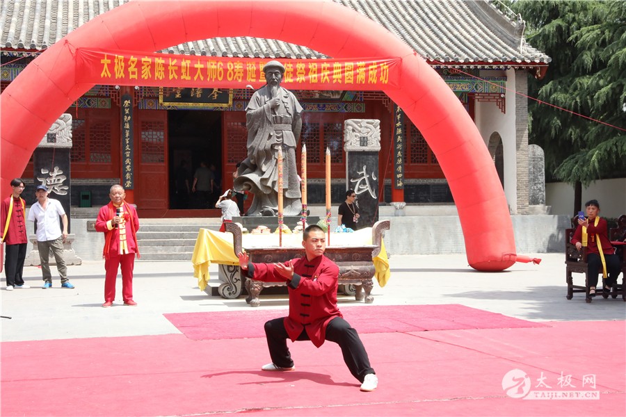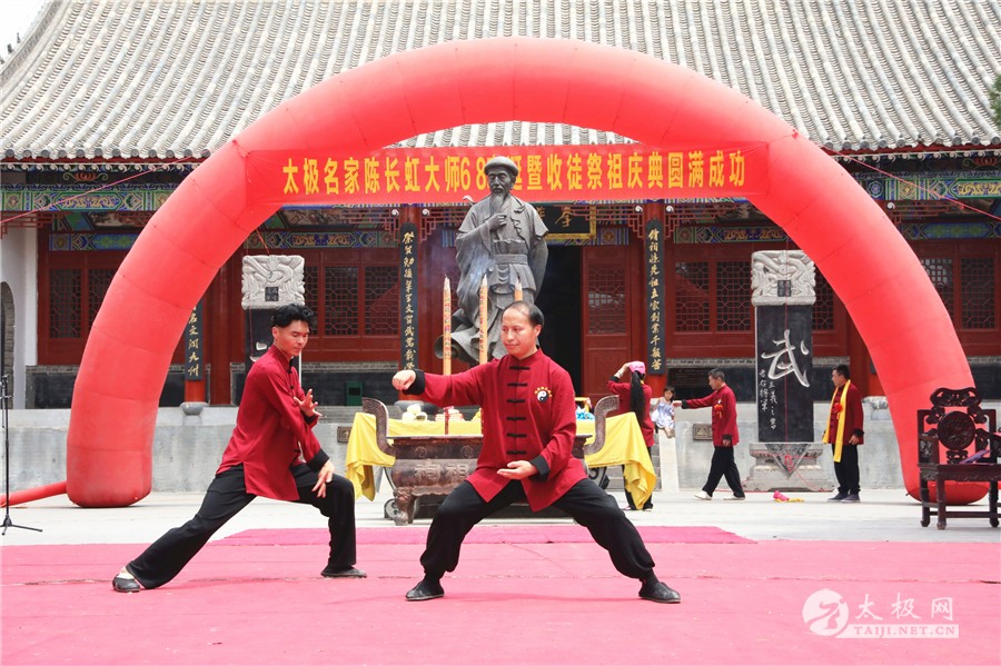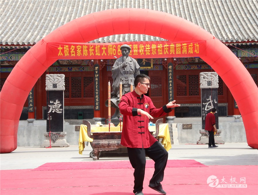 (太极网报道)临近端午的太极圣地陈家沟,张灯结彩,热闹非凡。6月1日,太极拳名家陈长虹六十八岁寿诞暨祭祖收徒庆典仪式于陈家沟太极拳祖祠举行,从全国各地赶来为陈长虹老师祝寿的弟子及再传弟子一行数百人带着浓浓的祝福和衷心的祝愿来到陈家沟,共同庆祝陈长虹老师六十八岁寿辰。 已进入花甲之年的陈长虹老师,大半时间都是与太极共同度过的。自己潜心学练,四处拜访名师,终得一身武艺;国内国外奔走教拳,更是一刻不曾停歇,传播太极的同时,也将中国的文化弘扬的更广。 温县政协副主席严双军,温县文化广电和旅游局副局长任海林、牛占文,温县文化馆馆长、县非物质文化遗产保护中心主任闫忙种,陈家沟太极拳研究院院长兼太极拳总教练冯树理,温县有刚武校校长陈有刚,中国国家书画协会副主席、陈式太极拳第十一代传人史大华,中国书画家协会会员、著名书画家李鸿庆和陈长虹老师新老弟子、同仁好友齐聚陈家沟庆祝。太极网等媒体全程跟踪报道。 远在日本的陈长虹老师弟子青木嘉教、尹東幸子特地发来贺电,祝贺恩师六十八岁寿诞喜收新徒。 仪式开始后,全体人员肃立,向太极拳始祖及历代先贤行礼,缅怀先辈之风华,感念先祖之功德,随后陈长虹老师宣读拜祖文。 温县文化馆馆长、县非物质文化遗产保护中心主任闫忙种讲话,他向陈长虹老师多年来为太极拳事业发展的辛苦付出表示肯定,向从全国各地赶到温县,走进太极拳发源地陈家沟的弟子表示欢迎,并预祝本次活动取得圆满成功。 中国国家书画协会副主席、陈式太极拳第十一代传人史大华代表弟子讲话,他表示,恩师数十年如一日坚守陈式太极拳传承,为陈式太极拳的发展做出了不可磨灭的贡献,自己将会谨遵师训携手同门师兄弟共同为太极拳的传承和传播坚持不懈奋斗终身。 传承太极是陈长虹老师最大的心愿,太极文化博大精深,渊源流长。传承太极离不开每位太极传承人的无私传授和默默奉献。今天,来自全国各地的24名太极拳爱好者通过传统的拜师仪式拜入陈长虹老师门下,成为陈式太极拳第十一代传承人,承担起传承太极拳,弘扬太极文化的历史重任。 活动现场,陈长虹老师弟子们进行了精彩的太极拳表演,让师父检阅,为寿宴助兴。陈长虹老师对弟子们的表演逐一点评,并进行现场指导。 太极拳表演 陈长虹老师指导弟子太极拳 拜师仪式圆满礼成后,陈长虹老师六十八岁寿诞庆典仪式在陈家沟酒楼举行。陈长虹老师全国各地弟子代表纷纷上前向师父送上生日的祝福。在一片喜庆的氛围里,大家合影留念,记下了师徒美好珍贵的瞬间。 陈长虹老师表示:感谢前来参加仪式的嘉宾和领导,也很感动众弟子从全国各地赶来。希望新入门的弟子们能够恪守门规祖训,认真习练太极拳,用心体悟太极文化,时刻牢记太极拳传承人的历史使命,为太极拳的传播和推广做出积极的贡献,为太极拳事业的蓬勃发展坚持奋斗。 新入室弟子名单: 刘腾凤、姚超英、熊利军、谢明金、林金杰、刘明凤、沈孙平、孙艳兴、程彦滨、黎广汉、单金瑞、金振宇、王本才、李红军、方保林、邵良东、滕远胜、刘礼军、詹粤海、冯冲、周海军、赵联安、陈萬良、陈洪涛。 本站责编:张欢 |