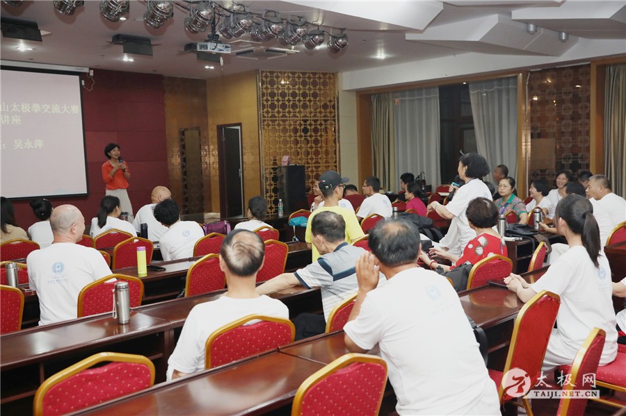 (太极网报道)6月15日上午,首届“豫见太极”云台山太极拳交流大赛在焦作云台山盛大开幕,来自国内各地及英国、澳大利亚等海外的太极拳爱好者组成的59支代表队1100余人共襄盛会。为回馈广大太极拳爱好者的支持,组委会特邀请当代太极拳名师名家讲座授课,与五湖四海的拳友互动交流。15日晚,首期豫见太极名家讲座在银河花园酒店3楼会议室举行。 首期讲座由国家级非物质文化遗产项目和氏太极拳代表性传承人、温县和式太极拳学院院长和有禄老师和太极名家吴永萍老师主讲,吸引了众多拳友到场旁听。两位老师根据多年研究、练习太极的的体会讲解了太极拳的练习方法、太极与养生等拳友密切关心的问题,受到大家的热烈欢迎。 和有禄老师以太极拳练习方法及练习目为主题,结合和式太极拳的技理特点做了精彩的讲解,和有禄老师身体力行,一招一式,严谨认真,一丝不苟的讲解每一个太极拳动作的攻防用法,并现场演示和式太极拳,以最直观的方式向拳友展示了和式太极拳的魅力。 太极与养生一直是拳友关心的问题,吴永萍老师运用由浅入深的理论,精辟的要点,对拳友的问题逐一分析讲解,令人心领神会,获益良多。 “豫见太极”名家讲座还将继续,更多精彩报道关注太极网。 本站责编:张欢 |