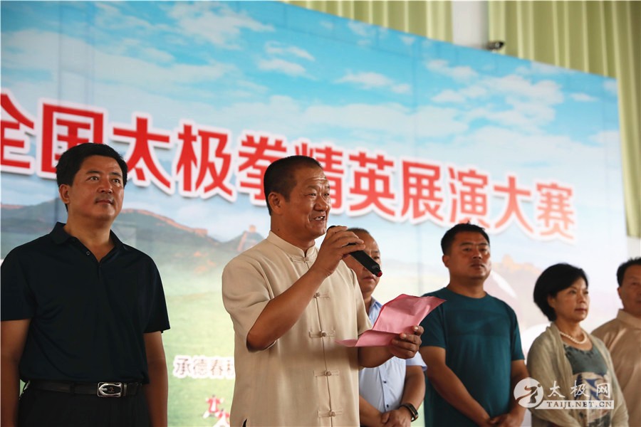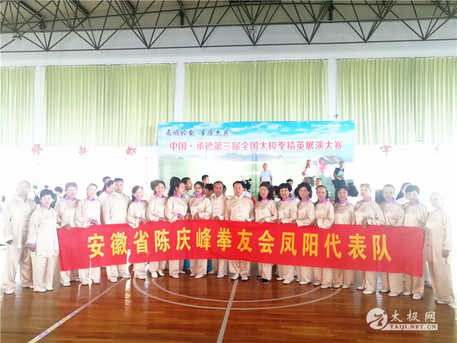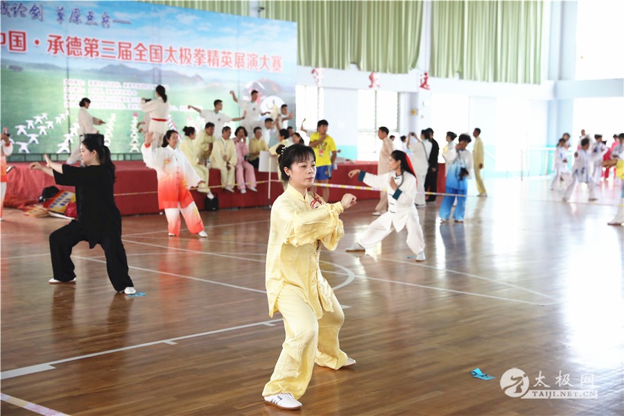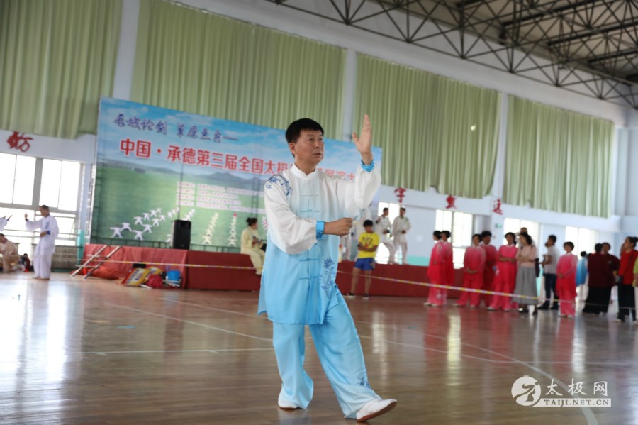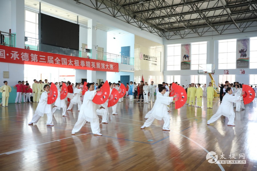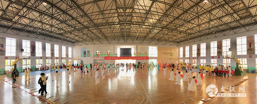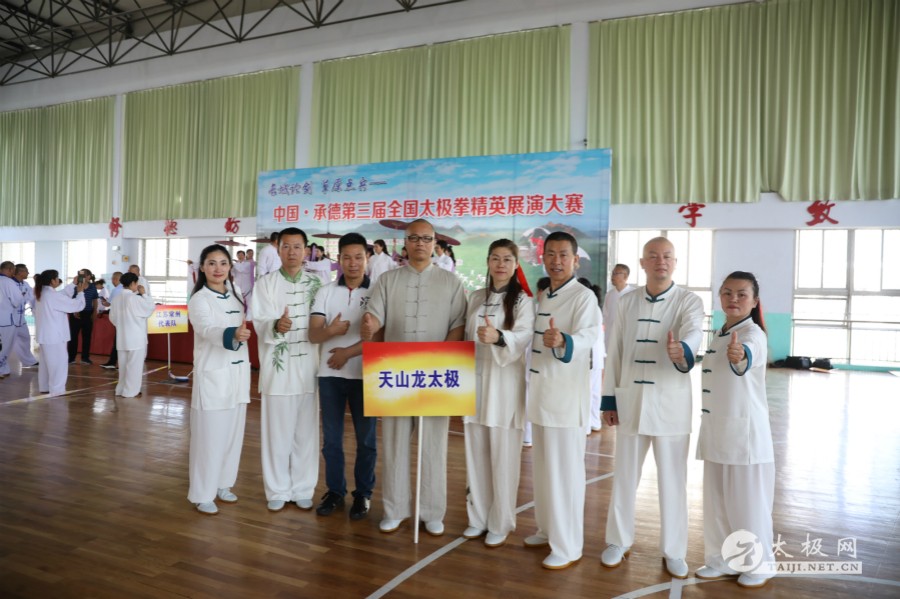 (太极网报道)长城论剑,草原点兵!以太极之名,相约“远方”承德。2019年6月29日,中国承德第三届太极拳精英展演大赛在河北民族师范学院体育馆隆重开幕,来自全国各地40余支代表队600余名拳友相聚承德,共同参加中国·承德第三届太极拳精英展演大赛系列活动,活动由太极网、承德市武术协会主办,承德凯捷文化传播有限公司承办,河北民族师范学院、承德春秋国旅等协办,活动得到了承德市人民政府、承德市旅游和文化广电局的大力支持。 出席开幕式的组委会领导团队有: 大赛组委会主任、太极网创始人刘洪奇 大赛组委会常务副主任、承德市武协主席项争鸣 承德凯捷文化传播有限公司董事长、承德市春秋国际旅行社总经理王臻舟 大赛组委会副主任、太极网总监李超 大赛组委会副主任、河北民族师范学院体育系主任宋广民 大赛总裁判长、承德市武协常务副主席金连起 大赛技术顾问及主要嘉宾有: 太极网名誉总编、原温县太极拳开发委员会主任、原温县体育局长原福全 中国北京九华太极拳馆创始人、石家庄市武式太极拳专业委员会会长张九华 赣州市太极拳协会副会长、中国永萍太极养生俱乐部创始人吴永萍 太极拳名家、温州市太极拳非遗代表性传承人、温州市陈上党太极拳运动中心馆长陈上党