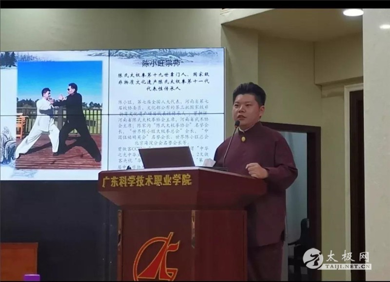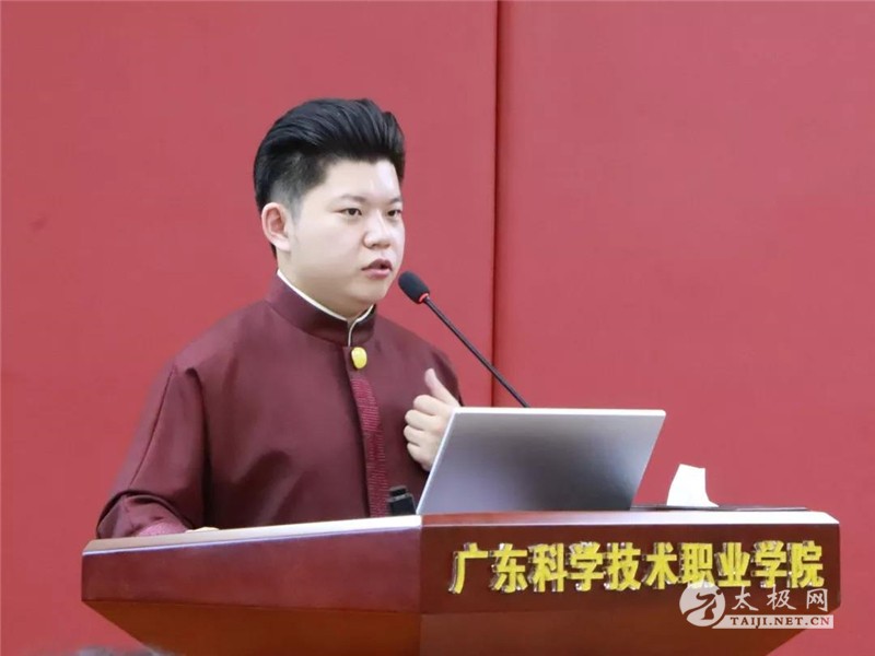 6月25日下午,国际太极拳大师陈小旺弟子,陈式太极拳第十二代传承人、家栋太极(北京总部)国术馆馆长、太极拳高级拳师邱家栋先生与夫人古法旗袍手工艺人郭世琦女士莅临广东科学技术职业学院,邱家栋先生在广科创新创业大讲堂作《问道太极》专题讲座。珠海市各高校体育部主任、珠海市武术协会特邀代表应邀参加,全体校领导、各职能部门和二级学院党政负责人及各学院学生代表共160多人聆听了讲座。讲座由校长李龙图主持。