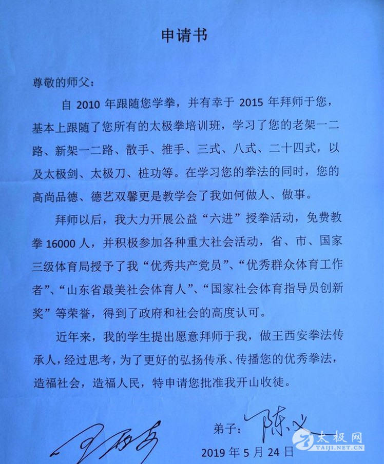 陈义,高级授拳师,高级经济师,陈氏太极拳第12代传人,国家非物质文化遗产传承人王西安大师入室弟子,泰安市体育局社团党总支委员,泰安市太极拳协会副主席,泰安市陈氏太极拳推广中心负责人兼总教练,泰安市传统武术协会副主席,泰安市益武传统武术研究中心名誉主席,泰安市太极拳发展研究会副会长,国家级社会体育指导员,国家一级裁判,中国武术六段,泰安市体育局优秀共产党员,泰安市十佳教练员,优秀裁判员,泰安市群众体育工作先进个人,被推选为2018山东省最美社会体育人、2014-2017山东省群众体育工作先进个人,曾获得全国体育总局社会体育技能创新奖,山东省体育局社会体育技能创新奖,山东省体育局社会体育指导员技能大赛一等奖,2016国际太极拳大赛冠军,曾发表国家级论文16篇与四部专著。