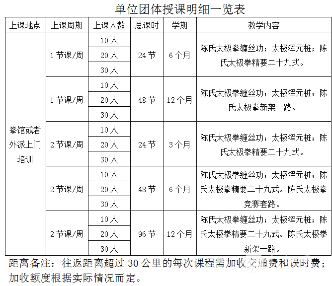 开封市太极马丙勤养生馆系河南省开封市企事业单位太极拳培训领先机构,承接各机关、企事业单位人员的太极拳培训项目。本养生馆提供专业教练和高级拳师,培训时间、地点双方协商确定。 1.社团太极培训:包含太极养生课、太极讲座公开课、太极教学等。 2.太极表演培训:包含晚会、企业年会、论坛活动等太极表演活动; 3.VIP太极私人定制课程:根据个人特殊情况,双方共同协商上课时间、地点以及授课内容。 企事业机构人员通过太极拳培训课程可获强身健体、修心养性的效果;员工精神面貌一新,提高员工身体素质,进而提高工作效率,减少企业医疗支出费用。 首先,减轻精神压力,增强员工的凝聚力、归属感,为企业的工作环境增添和谐氛围,员工开心,领导舒心,工作更顺心,公司领导和员工更有凝聚力,从而提高工作效率。其次,帮助领导提升公司形象,为员工创造更多的实用价值!让员工更进一步认同和理解中华太极文化,提升员工文化修养! 收费标准:单位个体授课收费标准: 8000元/3年(不限次)内容:陈氏太极拳新架一路二路、63式太极剑、八法五步、推手; 6000元/2年(不限次)内容:陈氏太极拳新架一路二路、63式太极剑、八法五步; 3600元/1年(不限次)内容:陈氏太极拳新架一路、63式太极剑; 2600元/半年(不限次)内容:陈式太极拳新架一路; 1800元/3个月(不限次)内容:陈氏太极拳精要29式; 800元/1个月(不限次)内容:国家竞赛套路——八法五步; 200元/人·次/2小时 (1个月1次) 拆拳讲劲。 (此价为实施的价格,谢绝议价。) 单位团体授课收费标准: 300元/ 次 / 60分钟; 8000元/ 30次 / 60分钟; 上课时间:上午 8:30——11:30 下午 14:30——17:30 温馨提示:付款方式(预付费、现金\微信\支付宝),一次付款,首次上课前办清手续,概不退费。 办公室电话:15037870961(马丙勤)微信同号 13903787694(马继红)微信同号 总教练马丙勤简介: 马丙勤,男,1963年12月生,河南省通许县人,陈氏太极拳第十二代传承人,师承太极拳大师马虹先生,中国太极拳名家。 教练员朱红、杨长青等多名助教 1、 朱红 本人朱红,女,现年46岁(1973,9.14)大专学历,自幼喜爱武术、体育,习练长拳,少林拳、小八式及刀枪棍棒等。少年时代曾多次参加表演和比赛并获诸多奖项。 2013年12月11日拜师马丙勤习练太极拳,成为陈氏太极拳第十三代传承人。 2015年6月30日考取社会体育指导员二级教练员证。 2018年8月20日考取陈氏太极拳三段段位证。 2018年8月27日考取社会体育指导员一级教练员证。 比赛成绩如下: 2015年6月13日荣获河南省传统武术大赛,太极组拳、剑二等奖。 2015年8月20日荣获第八届中国焦作国际太极拳,太极组拳、剑一等奖。 2015年9月17日荣获开封第九届运动会太极拳社会组比赛: 太极组拳、剑一等奖。 2016年3月31日荣获“全国五省传统武术邀请赛”陈氏太极拳:拳,剑一等奖。 2017年4月28日荣获中国陈家沟家乡塞:拳,剑一等奖。 2017年10月5日荣获石家庄“马虹杯”传统陈氏太极拳比赛:拳,剑一等奖。 2018年5月28日荣获韵中原“体彩杯”河南省第二届传统武术大赛:拳,剑一等奖。 2018.6.13荣获第三届全国武术运动大会太极拳选拔赛:二等奖。 本人坚持不懈地练习并研究太极拳,打拳、站桩、悟理、辩劲,体会太极拳的要领,静悟太极拳的精华。不遗余力地义务传授太极拳技艺,扩大太极文化影响,履行着一个太极拳传承人的光荣使命,发挥着一个太极拳传承人的光与热。