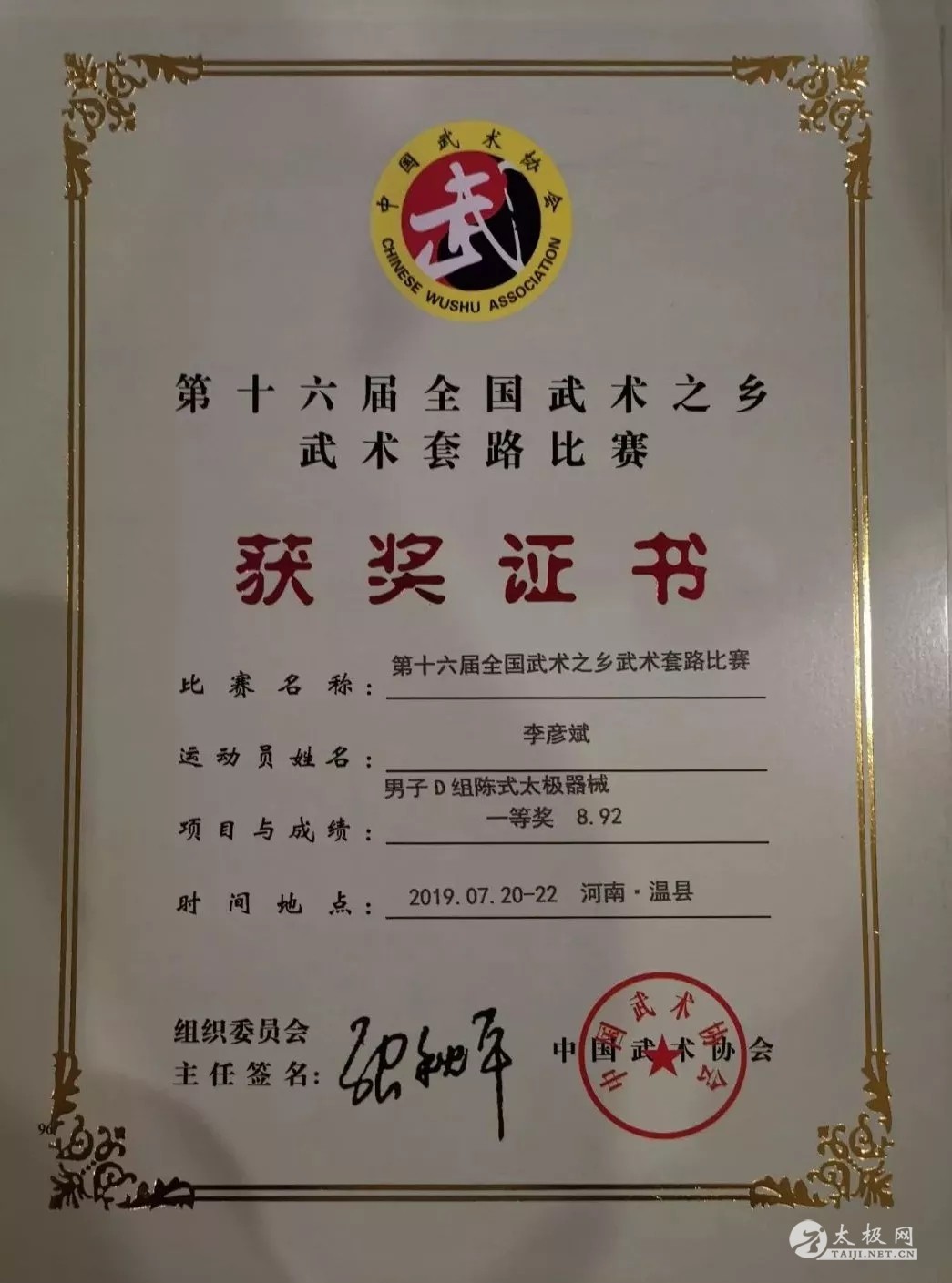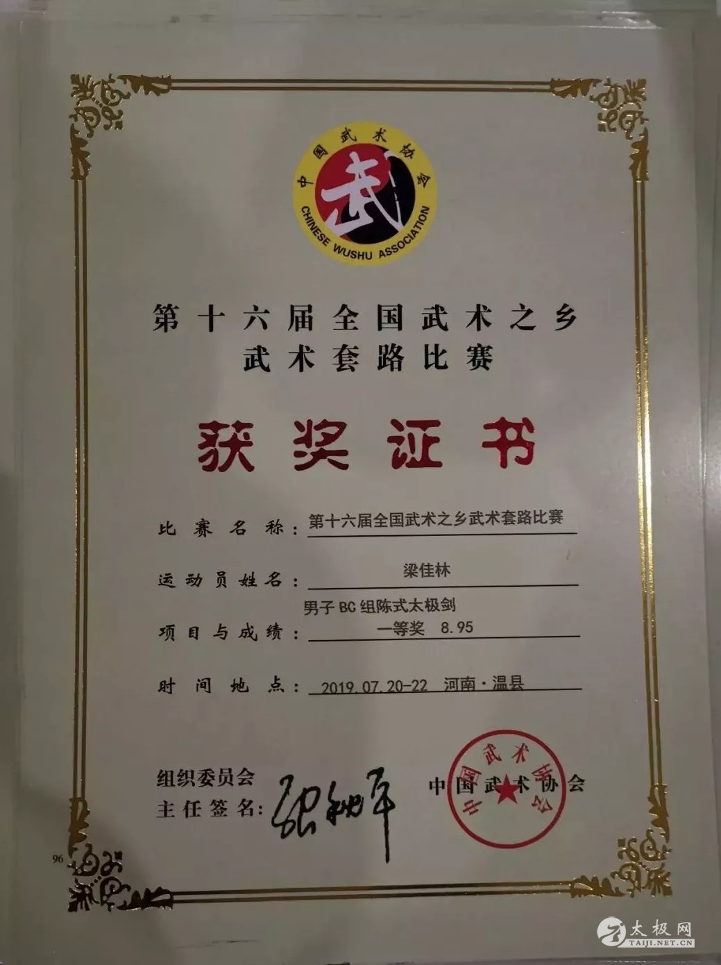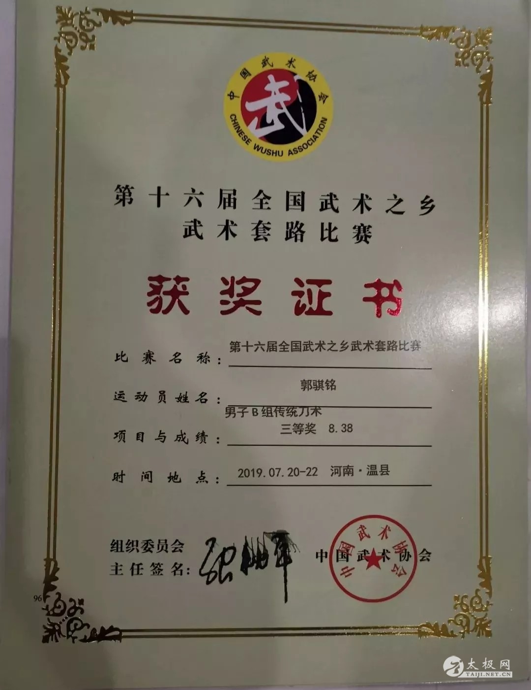 会拳友,演绎武术精华;扬国粹,彰显中华风采。7日20日—22日,由国家体育总局武术运动管理中心、中国武术协会、河南省体育局主办的第十六届全国武术之乡武术套路比赛在河南温县陈家沟太极拳文化国际交流中心隆重举行,来自全国武术之乡的97支队伍共1600余名运动员参加了本次大赛。【随太极】武术馆由馆长李彦斌老师、教练员梁佳林老师、学员王耀、郭梓涵、郭骐铭五人代表西安莲湖区全国武术之乡出征本次大赛。 西安莲湖全国武术之乡代表队 全国97个武术之乡的武术精英汇聚太极故里,可谓高手如云,变幻莫测,激烈程度不亚于任何比赛。可喜的是,李彦斌老师凭借精湛的水平,雄厚的实力获得男子D组陈式太极器械、男子DE组陈式规定太极拳两项冠军;梁佳林老师获得男子BC组陈式太极剑、男子BC组陈式太极拳两项冠军;王耀获得男子BC组陈式太极拳二等奖(亚军)、BC组陈式太极刀二等奖,郭梓涵获得女子AB陈式太极剑 二等奖,郭骐铭获得男子B组刀术三等奖,为西安莲湖武术之乡赢得了四枚金牌、三枚银牌、一枚铜牌的优异成绩,为西安莲湖区全国武术之乡赢得了四枚金牌,两枚银牌的优异成绩,再次为【随太极】赢得了荣誉。 部分获奖运动员拍照 李彦斌老师比赛中 梁佳林老师比赛中 王耀比赛中 郭梓涵比赛中 郭骐铭比赛中 获奖情况 武术之乡是中华武术文化的重要发源地和典范传承地,是传播和普及中华武术的重要载体,全国武术之乡武术套路比赛是国家武管中心金牌赛事之一,是有着重要影响力的国家级武术比赛,希望【随太极】武术馆继续奋斗为陕西武术赢得更多的殊荣。 本站责编:太极网梦梦 |