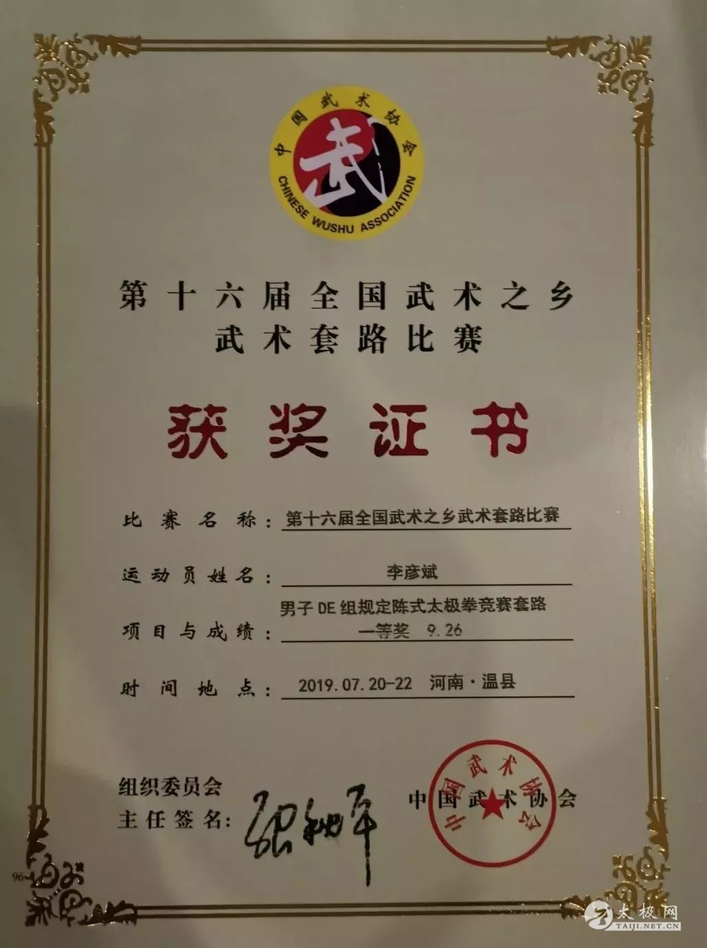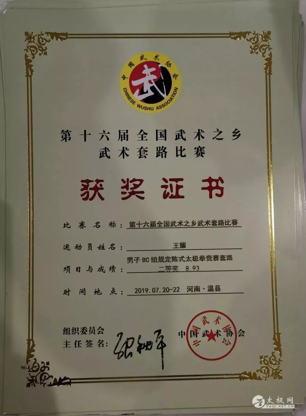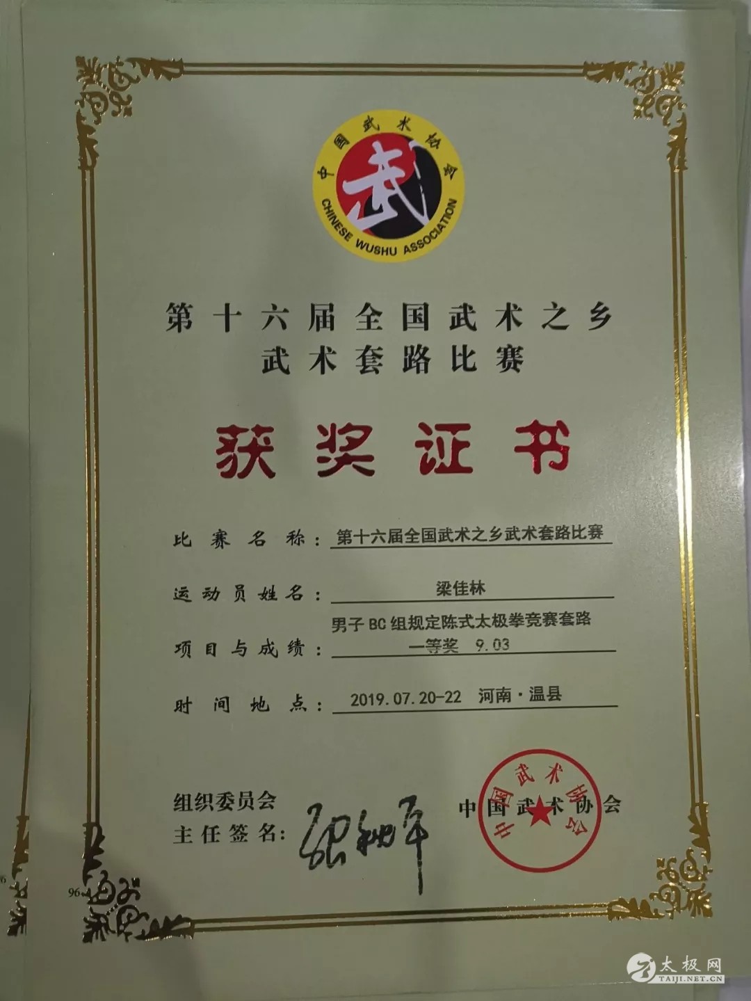 会拳友,演绎武术精华;扬国粹,彰显中华风采。7日20日—22日,由国家体育总局武术运动管理中心、中国武术协会、河南省体育局主办的第十六届全国武术之乡武术套路比赛在河南温县陈家沟太极拳文化国际交流中心隆重举行,来自全国武术之乡的97支队伍共1600余名运动员参加了本次大赛。【随太极】武术馆由馆长李彦斌老师、教练员梁佳林老师、学员王耀、郭梓涵、郭骐铭五人代表西安莲湖区全国武术之乡出征本次大赛。 西安莲湖全国武术之乡代表队 全国97个武术之乡的武术精英汇聚太极故里,可谓高手如云,变幻莫测,激烈程度不亚于任何比赛。可喜的是,李彦斌老师凭借精湛的水平,雄厚的实力获得男子D组陈式太极器械、男子DE组陈式规定太极拳两项冠军;梁佳林老师获得男子BC组陈式太极剑、男子BC组陈式太极拳两项冠军;王耀获得男子BC组陈式太极拳二等奖(亚军)、BC组陈式太极刀二等奖,郭梓涵获得女子AB陈式太极剑 二等奖,郭骐铭获得男子B组刀术三等奖,为西安莲湖武术之乡赢得了四枚金牌、三枚银牌、一枚铜牌的优异成绩,为西安莲湖区全国武术之乡赢得了四枚金牌,两枚银牌的优异成绩,再次为【随太极】赢得了荣誉。 部分获奖运动员拍照 李彦斌老师比赛中 梁佳林老师比赛中 王耀比赛中 郭梓涵比赛中 郭骐铭比赛中 获奖情况 武术之乡是中华武术文化的重要发源地和典范传承地,是传播和普及中华武术的重要载体,全国武术之乡武术套路比赛是国家武管中心金牌赛事之一,是有着重要影响力的国家级武术比赛,希望【随太极】武术馆继续奋斗为陕西武术赢得更多的殊荣。 本站责编:太极网梦梦 |