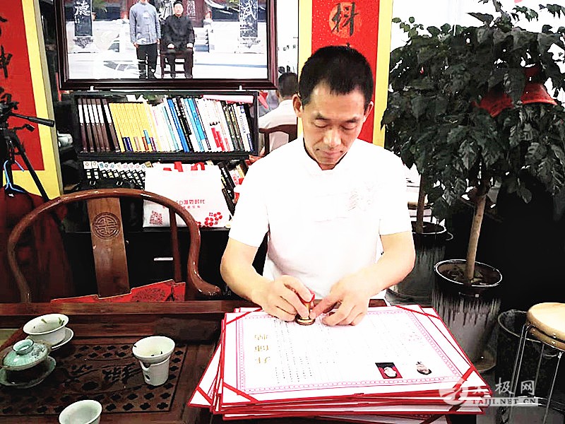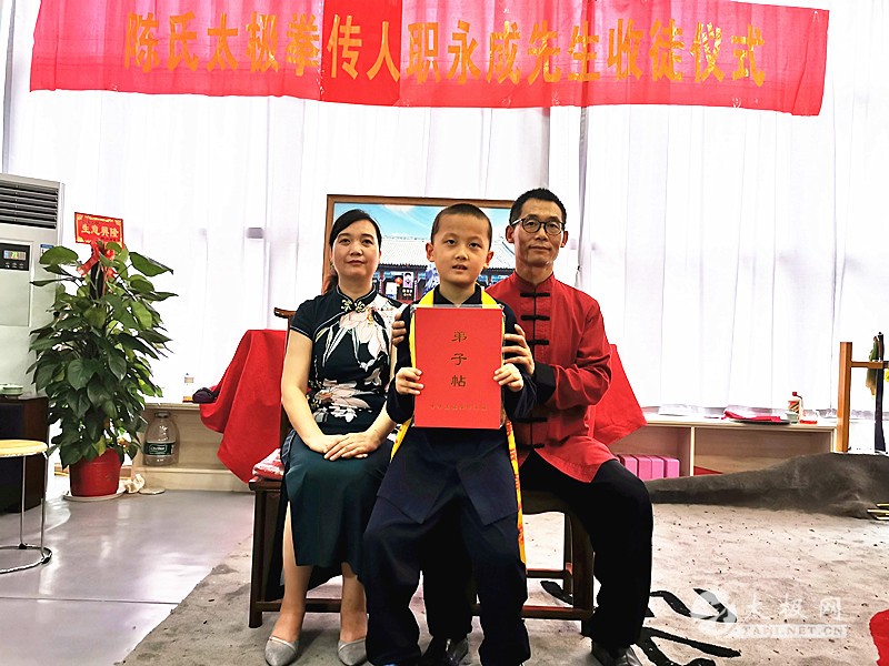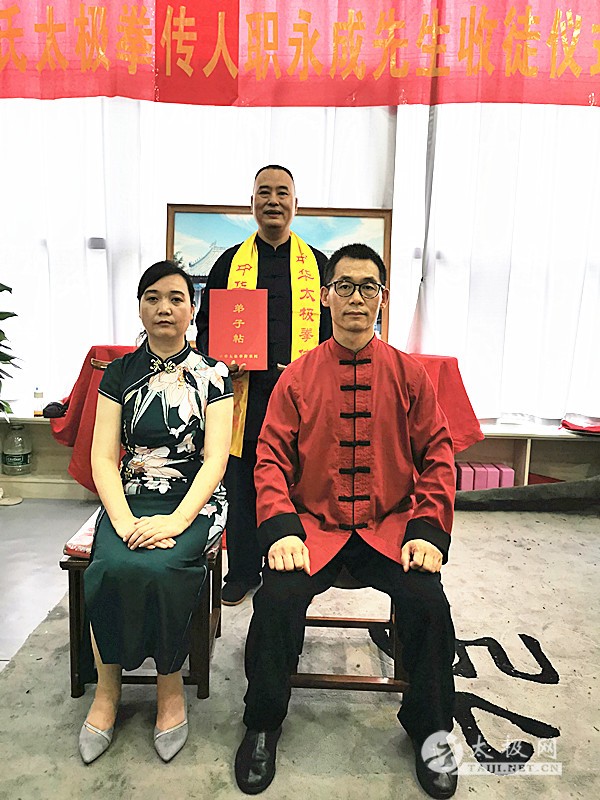 (太极网报道)太极根源陈家沟,传承花开遍四方。2019年7月21日,太极拳名家职永成收徒仪式在湖南长沙弘易太极拳馆举行。甘宜之、吴先华、彭文革、陈世明、李丁、熊朵、谭湛湛、张舒凡和杨正坤九位太极拳爱好者经过师门考验,通过传统拜师仪式正式拜在职永成老师门下,成为陈式太极拳传承人,为太极拳的传承和传播注入新力量。 作为多年的好友和战略合作伙伴,太极网时刻记录和见证着职永成老师在太极之路上的发展和成就。太极网创始人刘洪奇、河南太极国旅总经理张惠芳应邀专程从太极拳发源地温县赶赴长沙出席,与弘易太极拳馆副秘书长郭铭科、主教练郭延涛,长沙市商务局副巡视员刘跃宏等嘉宾共同见证收徒仪式。 太极网创始人刘洪奇先生主持收徒仪式,整个仪式遵循传统,简洁庄重。职永成老师首先向太极拳始祖敬香,以告收徒传承再续薪火。随后弟子们依次上前向师父、师母行拜师礼,递交拜师贴并接受师父回帖,新弟子在师父带领下叩拜太极拳始祖。在众人的见证下,拜师礼仪圆满完成,九位新弟子正式成为陈式太极拳传承人。 刘洪奇主持仪式 师父向太极拳始祖敬香 递交拜师贴 新弟子向师父行拜师礼 仪式现场 师父职永成在拜师帖上签字 新弟子彭文革代表发言,他表示非常荣幸能够拜入职永成老师门下,今后将会谨遵师父教诲,认真习练太极拳,为早日成为优秀的太极拳传承人不断努力。老弟子张红玉表示很荣幸能在现场见证恩师的收徒仪式,希望新弟子们今后能努力修行,不负师父厚望,尽心竭力传承太极拳。 老弟子张红玉发言 见证人郭铭科在讲话中对职永成老师喜收新徒表示祝贺,并希望新弟子们能够团结同道,学有所长,多沟通,多交流,将陈式太极拳推向全国,推向世界。 职永成老师向新弟子训话,希望他们能够恪守门规祖训,严守武德,继承师艺,尊师重道,认真习练太极拳,用心体悟太极文化,时刻牢记太极拳传承人的历史使命,为太极拳的传播和推广做出积极的贡献,为太极拳事业的蓬勃发展坚持奋斗。 师徒合影留念 职永成,1969年6月出生,男,河南温县人。陈式太极拳大架第十二代传人,师承陈小旺;陈式太极拳小架第十三代传人,师承陈永福。中国武术七段,国家武术段位指导员、考评员,太极网首席武术导师,《大拳师·百家讲堂》主讲人,2016太极网传播盛典年度表彰活动 “十大优秀馆校长”,中国温县国际太极拳年会名师。现任西安弘易太极文化传播有限公司董事长,西安弘易太极会馆会长兼总教练,世界陈小旺太极拳总会西安分会会长,西安市莲湖区武术之乡武术协会副主席,西安陈氏太极拳传承人联合会副会长,西安太极拳小架协会副会长,驻马店正阳大春文武学校太极拳顾问。 本站编辑:太极网安安 |