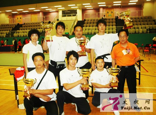 香港比赛五冠军合影香港比赛合影 武林大会喜获奖杯