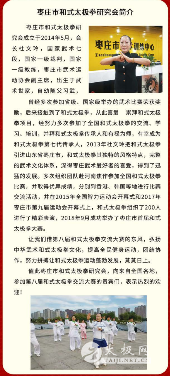 自2006年首届和式太极拳交流大赛成功举办起,这项极具特色赛事便形成两年一届的传统,至今已举办七届。2014年11月,"和氏太极拳"由国务院批准,文化部公布为国家级非物质文化遗产名录,自此每届的盛会也将非物质遗产展演融入其中。 为响应全民健身的号召,顺应和式太极拳的发展需要,经研究决定将两年一届改为每年一届,同时,由固定的举办地温县改为全国各协会组织竞选承办。2019年的第八届和式太极拳交流大赛将在山东省枣庄市台儿庄古城内举行,这将是和式太极拳交流大赛举办史上浓墨重彩的一页! 枣庄市和式太极拳研究会成立于2014年5月,会长杜文玲出生于武术世家,和式太极拳自2013年在枣庄落户,在市体育总会的正确领导下,在各级领导的关怀支持下,和式太极拳已在枣庄蓬勃发展,深得太极拳习练者的喜爱。 第八届和式太极拳交流大赛 暨国家级非物质文化遗产项目和式太极拳展演大会规程 一、支持单位:枣庄市体育总会 二、主办单位: 河南和式太极拳文化有限公司 枣庄市武术运动协会 三、承办单位: 枣庄市和式太极拳研究会 山东省枣庄市台儿庄旅游集团公司 山东聚元企业管理咨询服务有限公司 四、竞赛日期和地点 2019年10月10日—14日 山东省枣庄市台儿庄古城内举行 五、参赛单位:全国和式太极拳组织及个人,枣庄市各区、市和式太极拳站点及个人。 六、竞赛项目 (一)个人项目:和式太极拳传统套路七十二式、精要十八式、二十六式、十三式及剑、刀、棍等器械。 (二)规定套路:和式太极拳段位制单练、对练套路(1-6段)。报名时须注明本人几段套路。 (三)集体项目:集体和式太极拳及器械。 七、参赛组别 A组:16岁以下(含16岁) B组:17岁—35岁(含35岁) C组:35岁—55岁(含55岁) D组:55岁以上(含55岁) 八、参赛办法 (一)各参赛的代表队可报领队、教练各一名,运动员不限。 (二)每个运动员参赛不得超过三项,若每增加一项另交参赛费50元,可兼报集体项目 (三)每队限报集体项目1项,人数不得少于8人,少于8人时不予编排。性别、年龄组别不限。 九、竞赛办法 (一)套路比赛采用中国武术协会印制的2012版《传统武术套路竞赛规则》及有关补充规定以及和式太极拳三直五顺,轻柔圆活,中平适度,舒展自然的风格特点作为评判标准。 (二)参赛传统套路72式演练时间4-6分钟,精要十八式、二十六式、十三式演练时间1-3分钟;传统太极剑演练时间3-4分钟;其它太极器械演练时间不得少于1分钟;集体项目演练时间4-6分钟。 (三)集体项目须配音乐(自备U盘或光盘),由本队教练或领队比赛前负责拷贝到播音室。 (四)运动员的入场服装由大会统一提供,运动员的参赛服装不做规定,但要体现出项目特色、民族特色和时代特色,运动员不得着便装参赛。 十、录取名次与奖励 (一)套路按各组别、各单项男、女分别设一等奖20%、二等奖30%、三等奖30%,其余为表演奖颁发证书、奖牌。录取名次按实际参赛人数计算,采取四舍五入的办法。 (二)集体项目录取一、二、三等奖,录取按实际参赛队录取,一等奖录取20%,二等奖录取30%,三等奖录取40%,同时颁发相应名次的奖牌、奖状。 (三)设团体优秀组织奖和个人优秀运动员奖,优秀教练员奖,评选办法另定。 十一、参赛费用: (一)运动员参赛费标准为:参赛运动员需缴纳参赛费200元(含古城门票、游船、旅游景点及入场服装费等费用)。食宿费标准为:每人每天200元,5天合计1000元,以上费用参赛运动员每人总计1200元,其他不参赛的领队、教练等工作人员总计1000元,兼运动员者按照1200元收取;枣庄本地无食宿运动员每人交参赛费200元,请各代表队将以上款项按照指定时间一次性汇至大会组委会指定账户,推迟报到或提前离会者不予退办食宿费用。 (二)汇款须知:汇款时请务必备注转账说明(包括汇款单位、领队教练员等工作人员汇款人数,运动员汇款人数)。汇款至指定账户。 (三)汇款账户 开户行:日照银行股份有限公司枣庄分行 户 名:枣庄市武术运动协会 账 号:810700101421005314 十二、裁判和仲裁 (一) 大会设仲裁委员会 (二)主要裁判和仲裁委员会由大会组委会统一选派,不足部分由承办单位补充。 十三、报名与报到: (一)报名参赛时间为2019年9月10日—9月26日,网上报名和文字报名同时进行(报名表及责任声明书下载邮箱zzhstj678@163.com,密码:123456a。报名表上报邮箱zzws678@163.com),请各单位认真阅读填表说明。 1.请各单位、个人下载电子表格报名表一份填写完整后连同运动员的1寸免冠照片一张(办理参赛证及古城出入证用,需要背面写名字,参赛名一定要和身份证相符,否则后果自负),身份证复印件(或户籍证明),县级以上医院开具的健康证明、责任声明书于2019年9月22日前寄或送到:枣庄市市中区胜利路88号中坚1878七号楼三层武协训练中心办公室。 邮编:277100 报名表一经报送,不得更改; 联系人:林森:联系电话15318463366 (二)各领队及个人代表于10 月 10 报到,10月11日上午9点召开领队和教练员联席会,地点见报到须知。 (三)赛事协调联系单位: 枣庄市和式太极拳研究会 联系人:杜文玲 联系电话:13969469359 十四、报到 (一)报到时间 2019年10月10日 (二)报名地点枣庄市台儿庄古城游客服务中心 (三)联系人 马兴武(食宿接待)电话:18606422325 林 森(组委会) 电话:15318463366 (四)报到路线 1. 自驾岚曹高速台儿庄出口右转驶入枣台线,经运河大道直至运河北堤路台儿庄
