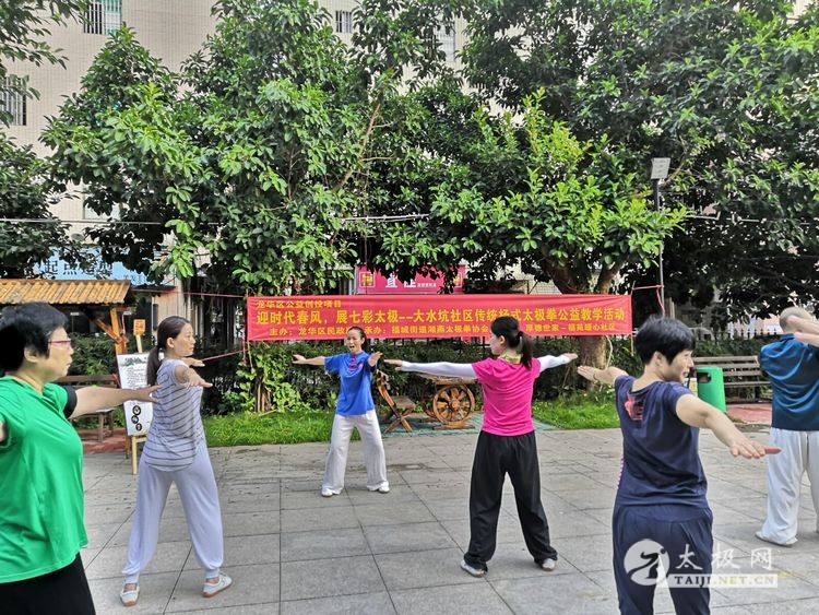 为了加强福城辖区内各社区的居民和来深建设者的联系和沟通,丰富小区居民和企业员工的文化生活,陶冶情操,释放压力,提高广大人民群众的身体素质和生活水平,在福城街道办事处、福城街道社区建设促进会、福城街道社区建设促进会联合党支部的领导和支持下,8月10日和12日上午,福城街道湘燕太极拳协会会长刘彩艳带领教练团队分别以九龙山小区和大水坑福苑暖心社区为服务点,拉开了传统杨式16式太极拳公益教学活动的序幕。 本次教学活动是龙华区民政局2019年公益创投项目“迎时代春风,展七彩太极”系列活动中的一个子项目。教学计划用时大约3个月,共40课时,九龙山小区和大水坑福苑暖心社区各20课时。学员通过学习,掌握传统杨式16式太极拳基本套路,以便为今后学习太极打下扎实的基础。 8月10日,公益教学开课的第一天,九龙山小区教学现场迎来了众多太极爱好者,刘会长向学员们传授了几个内容:1,九大关节(腕、肘、肩、颈、胸、腰、胯、膝、踝)的放松。2,杨式太极拳掌形:掌微伸,指微曲,指缝稍离,虎口撑圆。3,杨式太极拳基本功——猫步的练习。一招一式,老师讲解很详细,学员学得很专注。 |