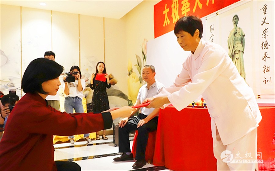 (太极网报道)巾帼有担当,传承谱新章。2019年8月28日,有太极“双刀女皇”之美誉的陈家沟太极拳名师陈素英于温县豪门大酒店举行收徒仪式。陈金海、张伟飞、林巍、刘雨溪、杨志民等5名优秀太极拳爱好者通过拜师仪式拜入陈素英老师门下,成为陈氏太极拳第十二代传承人。 出席活动的嘉宾有温县政协副主席严双军,温县县委宣传部副部长宋明军,河南电视台公共频道主任刘静、来自浙江东阳的张琼琅以及陈素英老师众多亲朋好友,收徒仪式由孙琰主持。 陈素英,1959年生于太极拳发源地陈家沟,陈家沟陈氏十九世、陈氏太极拳第十一代传人。自幼随祖父——一代太极拳大家陈守礼习练祖传太极拳,得到太极真谛,后与四大金刚一同跟随陈照丕、陈照奎大师学拳,同时得到冯志强大师的指点。数十载太极生涯精研深耕,她将太极拳运动与养生保融会贯通,形成自己的独特拳风,有太极“双刀女皇”、陈家沟“五朵金花”之一等美誉。 仪式遵循传统,简洁庄重。新入门弟子依次上前递交拜师贴,行拜师礼,师父回帖并给弟子披挂绶带。随后陈素英带领弟子,共同向陈氏先祖祭拜叩首,意在向宗师明示传承,并向太极拳历代宗师表示她将带领门下弟子为太极拳的传播和发展而不懈努力。 温县政协副主席严双军在讲话中对陈素英老师表示祝贺,称赞陈素英老师德艺双馨,堪称太极界的巾帼豪杰。祝贺新入门弟子得遇良师,希冀大家学有所成,为太极事业奋力拼搏,将太极拳发扬光大。 温县县委宣传部副部长宋明军在讲话中表示,太极拳的传承和传播离不开广大优秀太极拳传承人,高度肯定了陈素英老师多年来在传承推广方面的突出贡献。希望在以后的日子里,师徒携手共进,为陈氏太极拳的发展、弘扬继续做成更大贡献。 新弟子林巍代表发言,她表示非常荣幸得遇良师拜入陈素英老师门下成为太极拳传承人,这也鞭策着自己为太极拳的传承和传播工作肩负责任和担当。 拜师仪式后,弟子们向嘉宾及师父陈素英做了精彩的汇报表演,随后大家合影留念,收徒仪式在一片欢乐祥和的气氛中圆满结束。 |