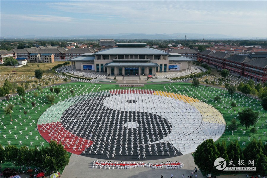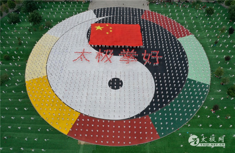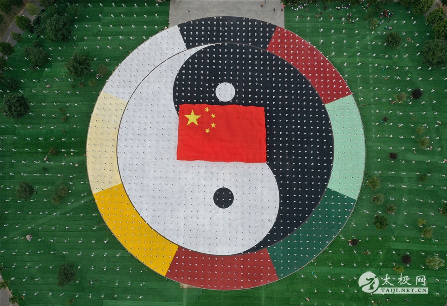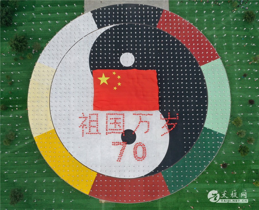 (来源:古温乡土)8月28日,在太极拳发源地——河南省温县陈家沟,一万名太极拳爱好者齐聚太极拳文化国际交流中心集体演练太极拳,并舞动巨幅国旗,拼出祖国万岁、太极拳好等字样,向新中国成立70周年献礼。