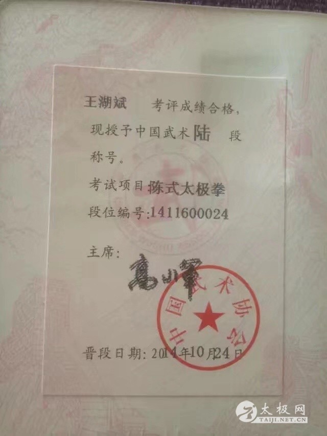 2010年我随老师来到了魂牵梦萦的太极拳圣地温县陈家沟,参观了太极拳祖祠,并有幸得到了师爷陈庆州大师的指点与勉励。陈家沟的朝圣,使我对太极拳文化有了更深的领悟 。《太极拳论》中说:“由招熟而渐悟懂劲,由懂劲到阶级神明”……我深知在浩瀚的太极之林,我所学到的不过是沧海一粟,太极拳值得用毕生精力去感悟与追求。我无法忘记自己在三九寒天冰天雪地里的埋头苦练,酷暑三伏在广场上挥汗如雨地练习,金牌是我太极拳成长过程中最好的印证,见证了我的汗水,师傅的期盼,师兄姐妹间的帮助……所有的一切的一切都已经成为往昔难忘的回忆。曾经的成绩与荣誉只能代表过去,今天又是新的开始,“学海无涯,艺无止境”,在今后的日子里我将继续苦练太极拳,争取让自己的太极拳技艺百尺竿头更进一步。