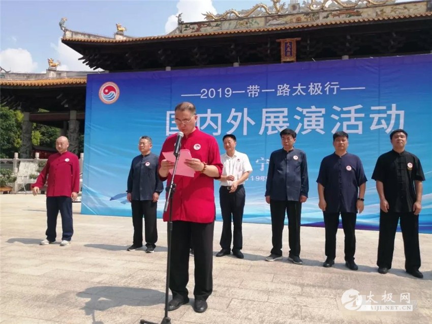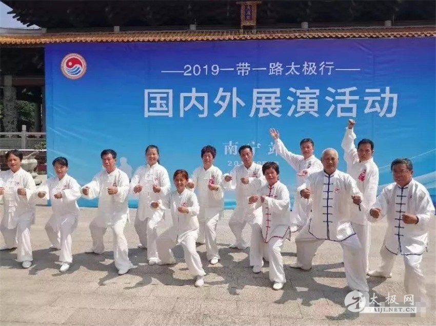当日,南宁市人大常委会副主任阮兆丰,焦作市人大常委会副主任葛探宇,温县县委常委、组织部长、县产业集聚区管委会主任朱保平,温县县人大常委会副主任马振军,桂平市人大常委会副主任王锦芳以及当地武协的相关负责人参加了展演活动。 南宁市人大常委会副主任阮兆丰致欢迎词 阮兆丰首先致欢迎词,他指出了“一带一路”建设为中国的发展写下了辉煌的篇章。太极拳作为中国瑰宝,乘着“一带一路”的东风向世界展示中国武术文化的魅力,向世界共享中国武术发展的成果,不断谱写太极拳事业的新篇章。 焦作市人大常委会副主任葛探宇致辞 葛探宇在致辞中表示,太极拳发源于河南省焦作温县陈家沟,由陈王廷创编,至今已有400多年历史。太极拳发源于河南焦作温县陈家沟,由陈王廷创编,至今已有近400年历史。它吸纳了中国传统儒、道哲学,体现了阴阳辩证思想,融和了技击、健身、养生等功能,具有强身健体、陶冶情操、修身养性、益寿延年的神奇功效,受到广泛欢迎。同时,作为中国传统文化的重要代表,太极拳具有鲜明的中国风格和独特魅力,成为风靡世界的健康运动品牌和连接不同种族、不同民族、不同语言、不同国家的文化纽带,更是中国文化对外交流传播的重要载体。 陈家沟优秀太极传承人、南宁乐道太极院院长董志鸿宣读倡议书 董志鸿在倡议书中提出,太极拳经过近四百年传承发展,衍生出诸多流派,传播到世界150多个国家和地区,习练者达数亿人。2006年,陈式太极拳入列首批国家级非物质文化遗产名录;2007年陈家沟被中国民协、中国武协命名为“中国太极拳发源地”“中国武术太极拳发源地”“中国太极拳文化研究基地”。 他倡议,让我们共同携手,坚定“四个自信”,助推太极拳这一优秀传统武术文化瑰宝在国内的传播,为实现中华民族伟大复兴的中国梦,凝心聚力! 接着, 南宁市人大常委会副主任阮兆丰宣布展演活动启动,由乐道太极院院长董志鸿带领学员们演练陈式太极拳十三式。 2019年一带一路太极行展演视频(南宁站) 活动现场,70余名南宁乐道太极院的学员共同演绎了刚柔相济的陈式太极拳,时而步伐轻灵沉着、时而动作柔和缓慢,精湛的技艺、流畅的动作,将太极拳的魅力展现得淋漓尽致,让现场观众深刻领略了太极拳这一文化瑰宝的独特魅力。 南宁市人杰地灵,习练太极拳者众多,氛围浓厚。南宁乐道太极院以"荟萃国学精英,传承太极精髓"为宗旨,以“让太极生活化,让国学平民化”为愿景,以“继先贤绝学,传太极薪火”为使命,在南宁市中心城区建立了800多平方米的太极院,广纳来自世界各地的太极拳爱好者,共同传承与宣扬中国传统文化以及陈式太极拳的文化底蕴。 此次,参与演练的70多位乐道学员纷纷表示,今后将共同携起手来,打造“南方陈家沟”,响应国家“一带一路”的号召,不忘初心,担当使命,以陈式太极拳为重要载体,大力弘扬中国传统文化,太极文化,展示太极魅力,共同向世界传播“共享太极·共享健康”的健康生活理念。 “阴阳合于道,太极一家亲!” 2019年一带一路太极行展演图集(南宁站)